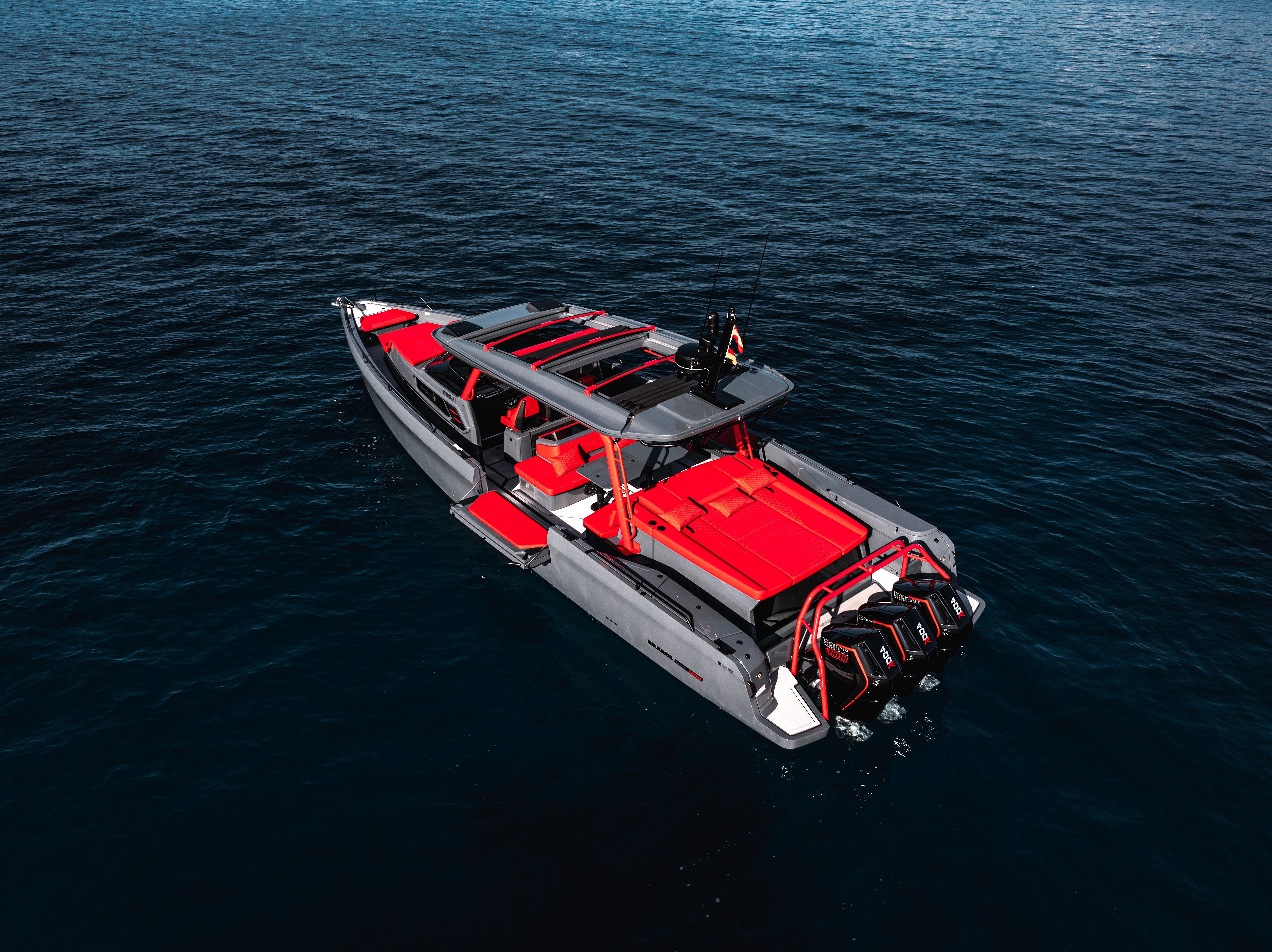 That’s a mouthful, so let’s break it down. “Brabus Shadow” is the make and model of the brand’s covetable speedboat series, all of which are based on an excellent Red Dot-winning design by Finland’s Axopar Boats. The “1200” descriptor, new for 2024, denotes the longest and most powerful Brabus Shadow yet.