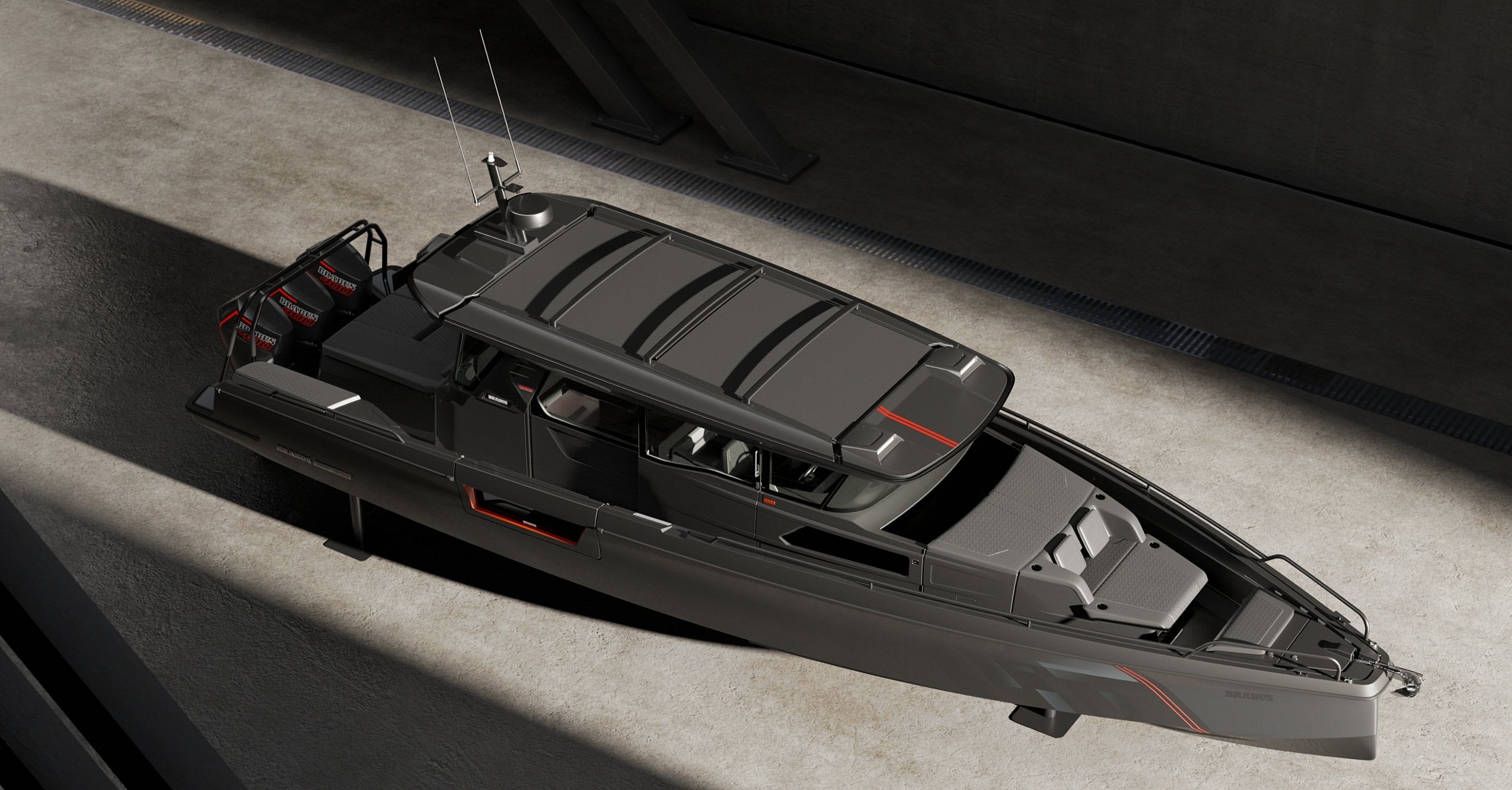 The boat itself boasts the same black-and-gray Black Ops Signature Edition scheme we’ve seen on the Shadow 900, featuring a “BRABUS Graphite Black” paint job and Signature Style graphics that run across the entire exterior design concept, and accompanying black chrome hull badges.