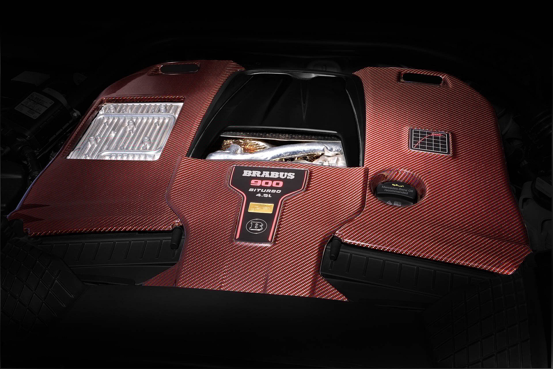 Meanwhile, the interior seats are covered in triangle-quilted Mondial Black leather with red contrast piping. Over 206 individual cockpit elements, including the switches, speaker covers, air vents, trim panels and handles feature a glazing in Shadow Gray. Carbon fiber is abound on the instrument panel, the door panels, center console and door sill trims, which feature an LED-backlit Brabus logo that changes color in sync with the interior’s ambient lighting.