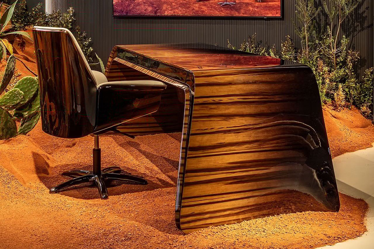 Even a handsome desk looks pulled from the future, or right from the design world of Bugatti.
