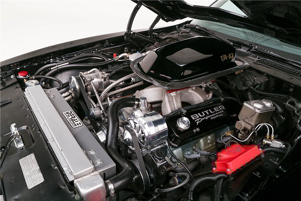 Instead, Butler Performance enlarged the Pontiac big block V8 from 6.6 liters to 8.2 and bolted on high performance Edelbrock aluminum intake manifold and heads, along with other go-fast goodies to produce 600 horsepower of Smokey-eluding speed.
