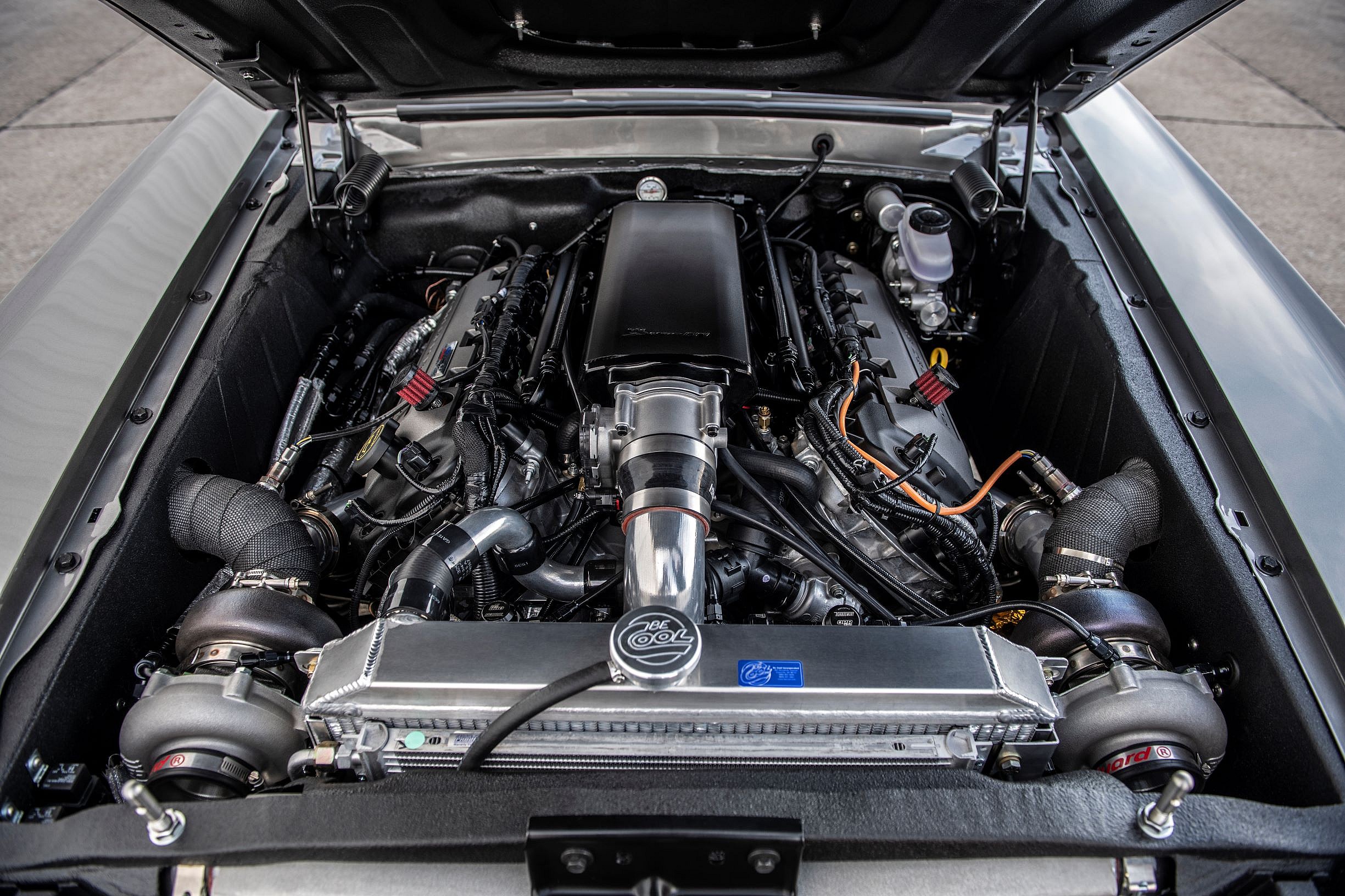 The custom build began with a 1969 Mustang Mach 1 shell that was restored to factory-new condition before a 1,000-power twin-turbocharged Ford 32-valve Coyote V8 was installed under the hood.