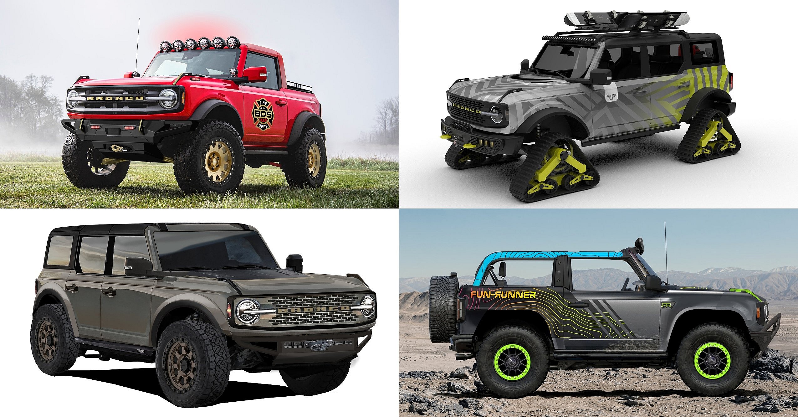 The Specialty Equipment Market Association (SEMA) tradeshow is coming up quick on November 2, which means that a herd of one-off Ford Broncos will be descending on Las Vegas to show off the SUVs’ versatility as a custom. Five leading American shops worked on six builds—four full-size Broncos and two Bronco Sports. Check them out below: