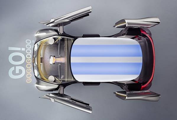 The company’s solution: a silver-skinned machine that lets drivers who use the car’s steering wheel stay in touch with their surroundings. Body panels light up with various colors and images, letting drivers personalize the vehicle’s appearance.