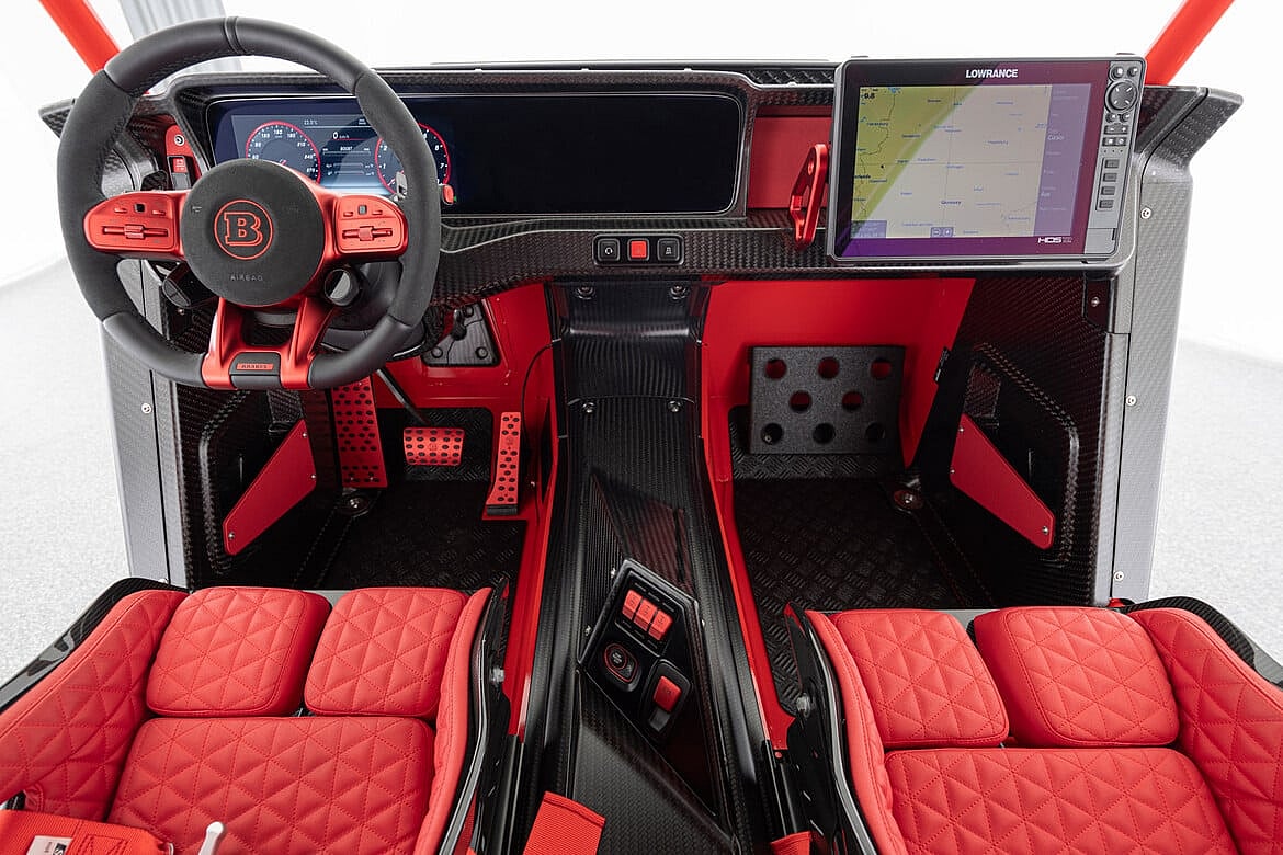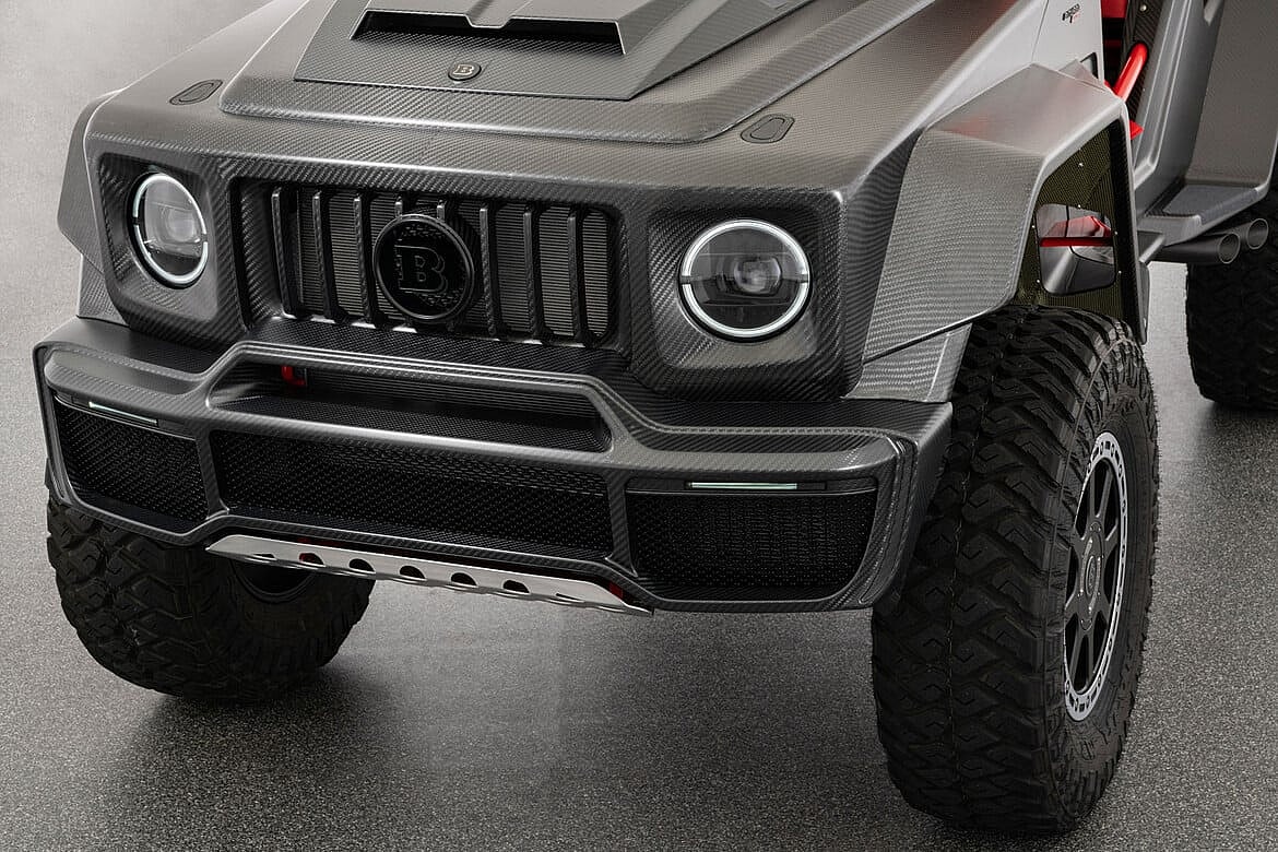 Like other uptuned based supercars and G-Wagons in the German tuner’s 900 series, the 900 Crawler runs an AMG twin-turbo V8 that Brabus has bumped up in displacement from 4.0 to 4.5 liters to achieve 900 horsepower, enough to hit 62 mph in 3.4 seconds. Torque and top speed have been limited to 774 pound-feet and 100 mph for good reasons relating to its purely off-road purview.