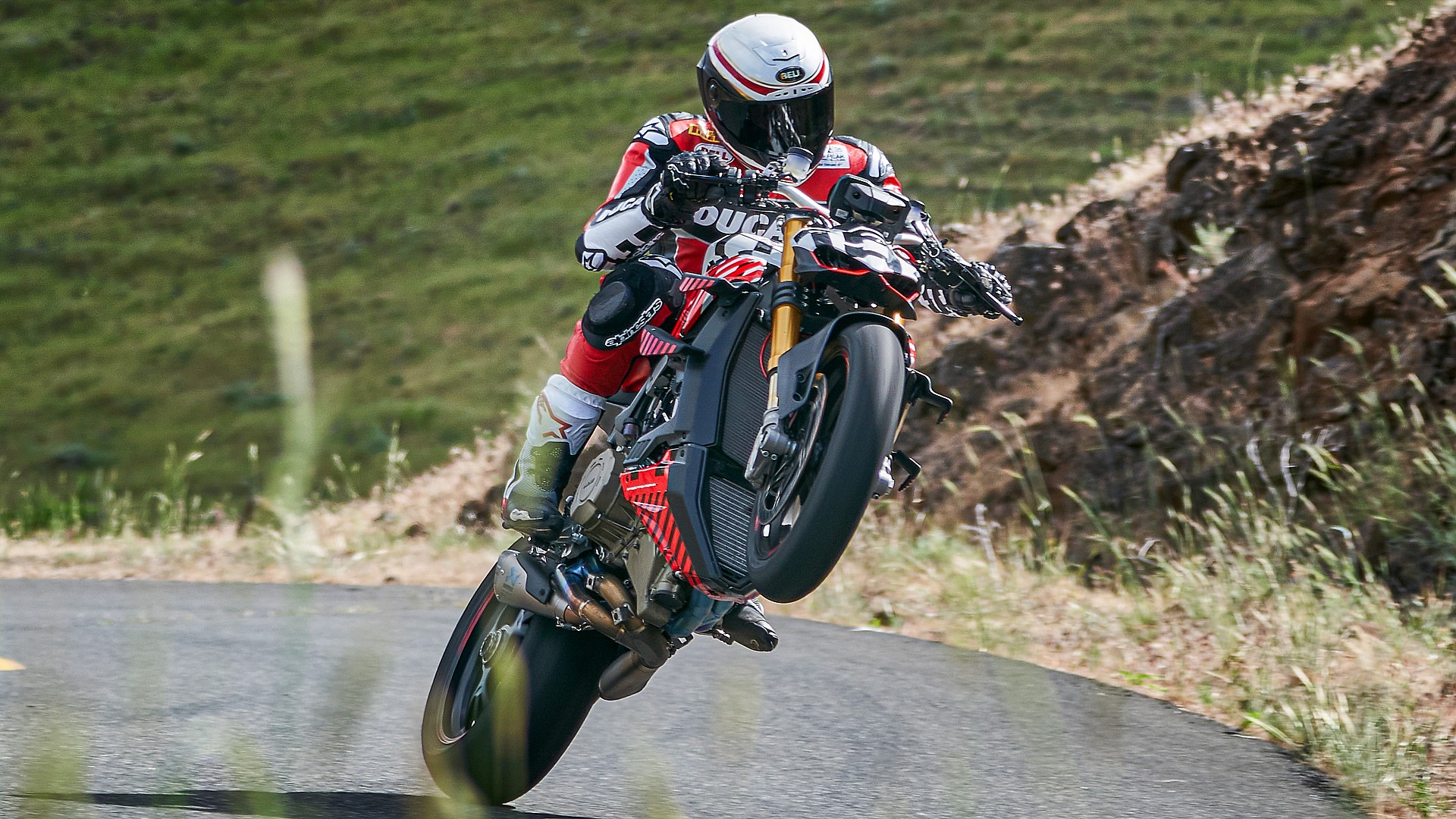 The Ducati Streetfighter V4 kept the sportbike’s absolutely insane 1,100cc four-cylinder, but lost its fairings got a new set of high-and-wide handlebars to create more aerodynamic profile.