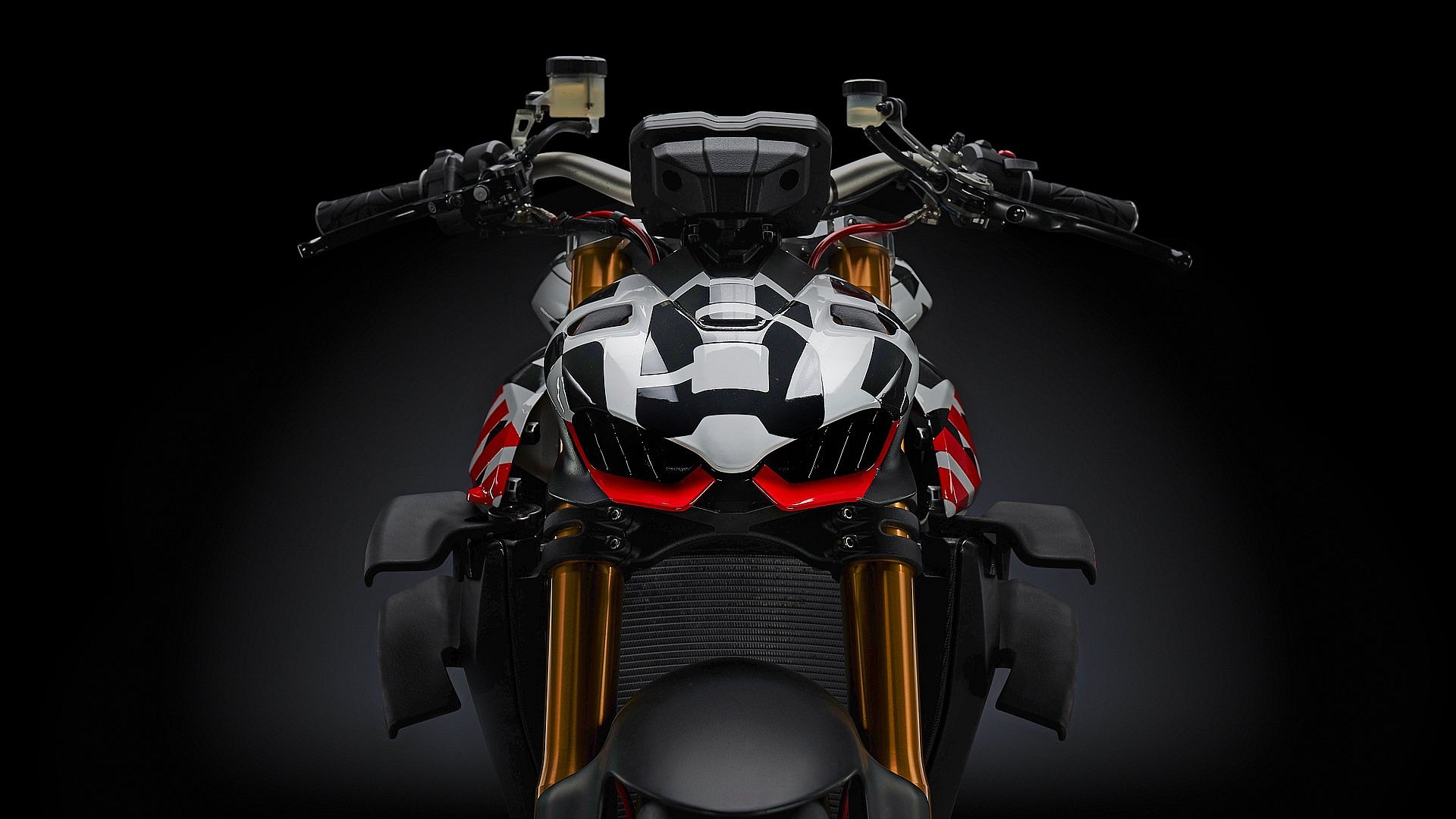 A special “pixelated” livery designed by Centro Stile Ducati continues the aggro styling.