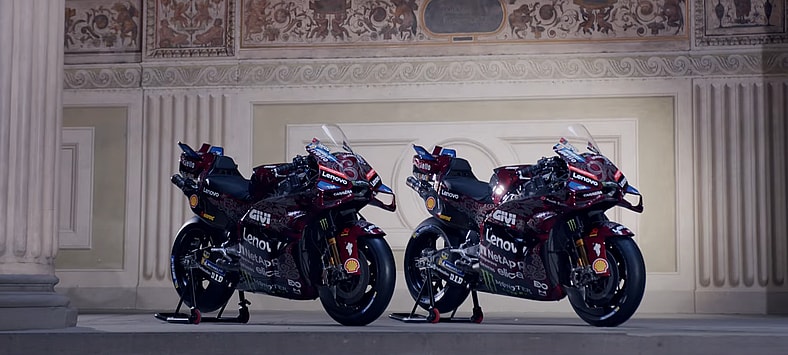 Inspired by artist Leonardo da Vinci, the special Desmosedici GP25 features intricate designs that weave together the spirit of the Renaissance with the raw power of a MotoGP race bike.
