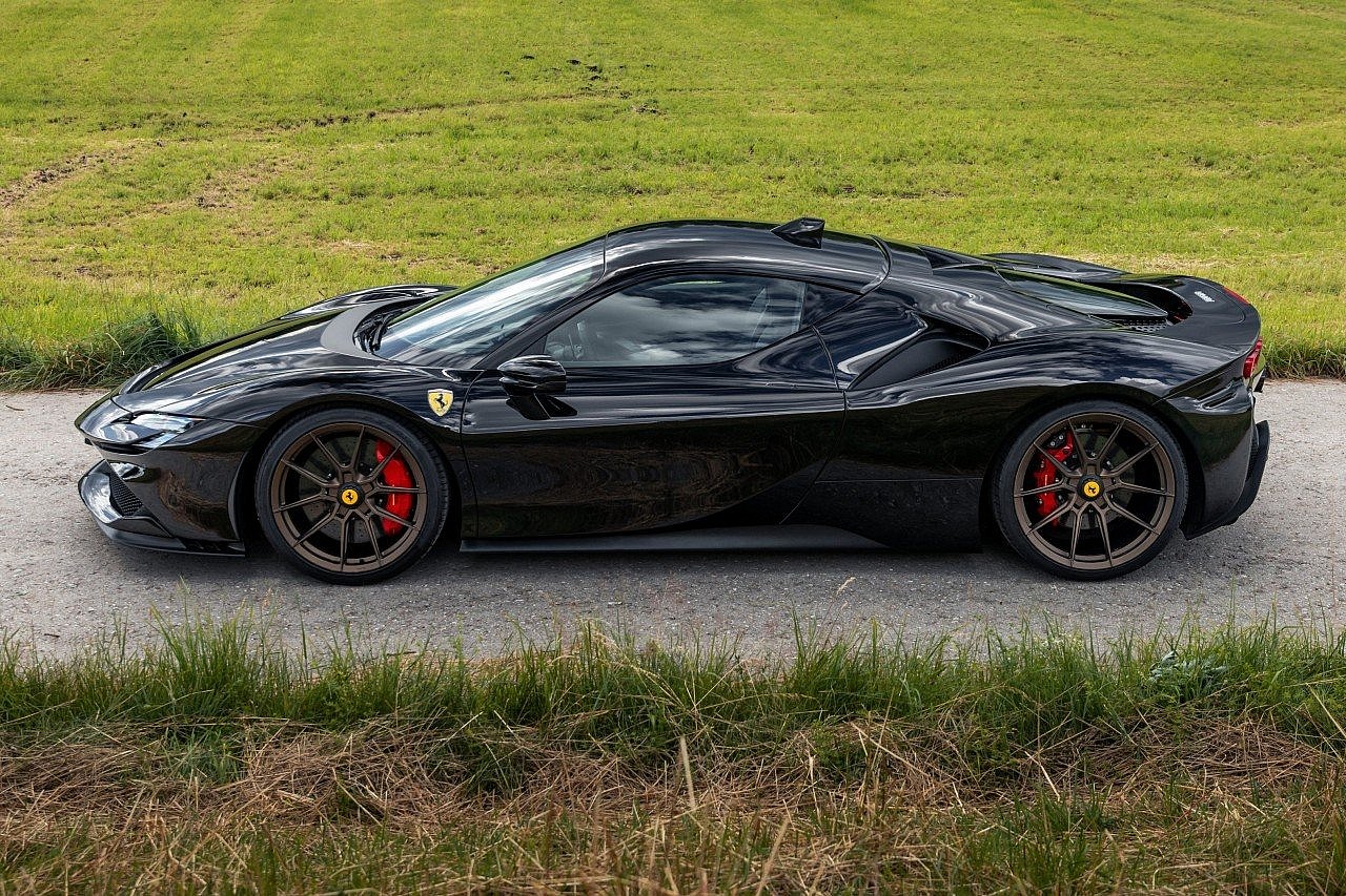 From the factory, Maranello’s first plug-in hybrid packs a 769-horsepower version of 4.0-liter, twin-turbocharged V8 found in the 488 Pista, plus three extra electric motors to bring maximum output up to 986 hp.