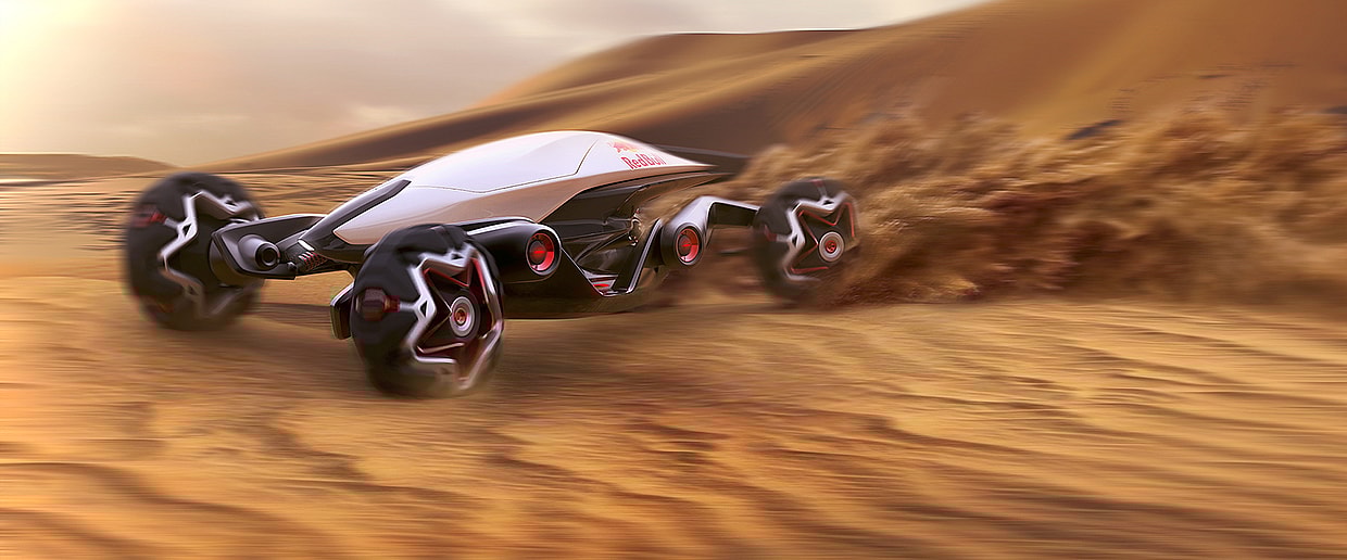 The futuristic electric concept racer is built to tackle the sand and the streets.