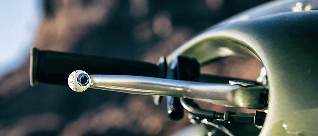 Three Martini Lunch’s serious performance chops is leavened by lighthearted touches, like the eyeball on the front brake lever.