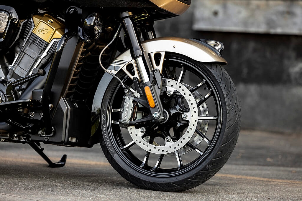 Functionally, this custom build is Indian’s premium version of the stock Challenger. A more comprehensive electronics package includes smart-lean technology that optimizes ABS in turns, while an active headlight system increases visibility in any orientation.