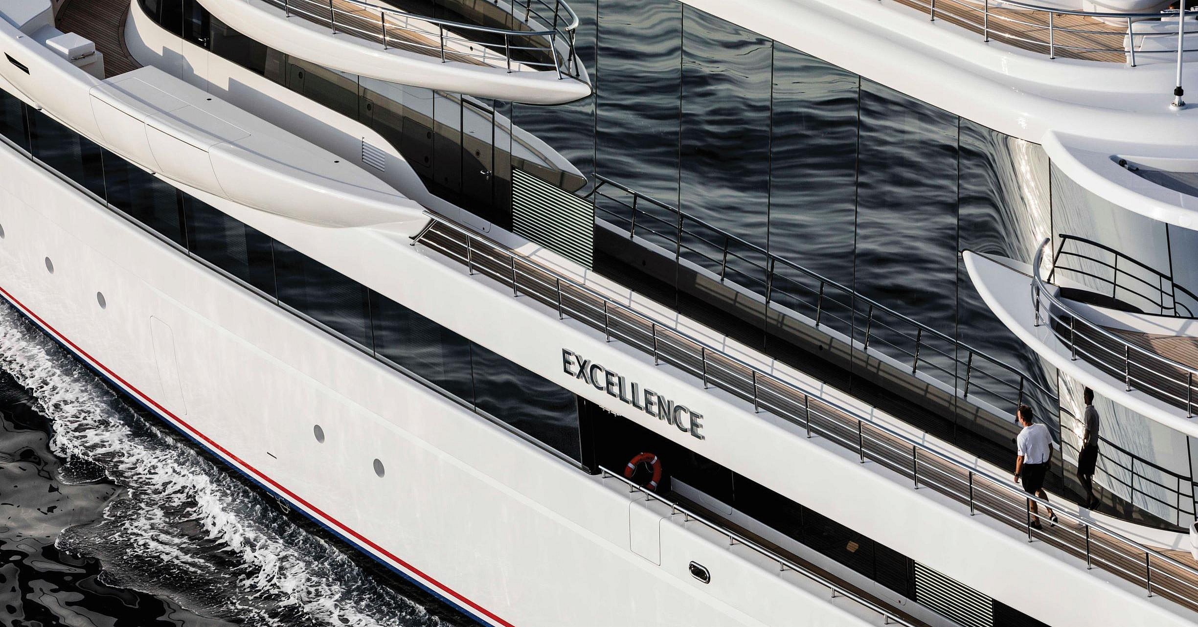 A spa with a sauna, a gym and a tiered cinema are all in keeping with the billionaire lifestyle, as is a spacious beach club with a sea terrace and bathing steps on the swimming platform aft. And Excellence carries two custom limo tenders crafted by Hodgdon of Maine for excursions to shore, stored in a large water-level tender garage.