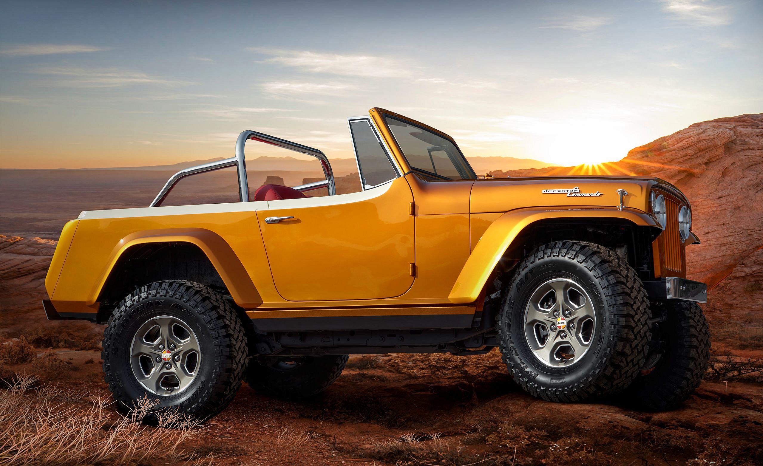 The build began life as a 1968 Jeepster Commando, the first compact 4×4 offered with an automatic transmission. However, this made-for-Moab ride got the 2020 Jeep Wrangler Rubicon’s 2.0-liter turbocharged four-cylinder.
