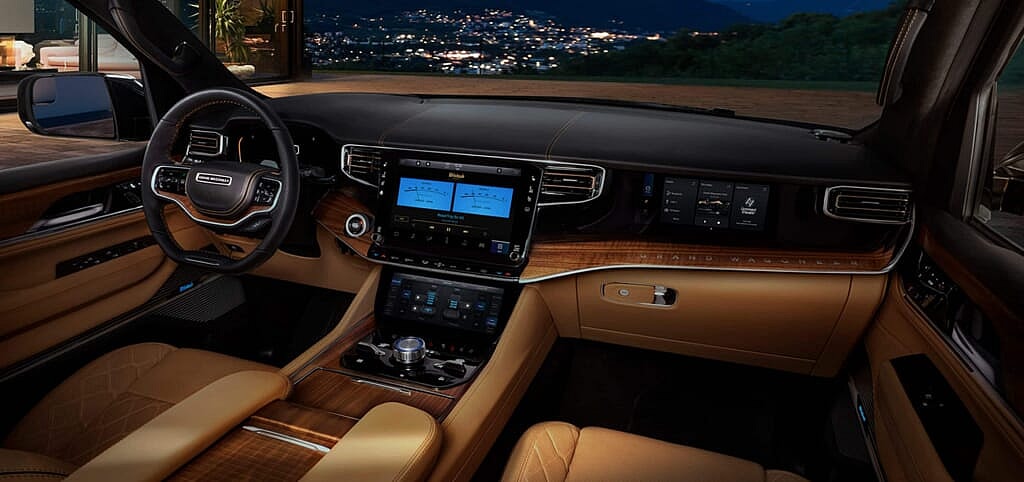 The new Grand trim is 214.7-inch-long, seats eight, weighs 6,340 pounds and can tow a school (or 8,260 pounds). Those dimensions rank it up there with the largest and most prestigious full-size SUVs such as the Lincoln Navigator and the Cadillac Escalade. However, if a buyer can settle for a more basic model of the latter two vehicles, he or she will save money as the Grand Wagoneer is more expensive by about $10,000.