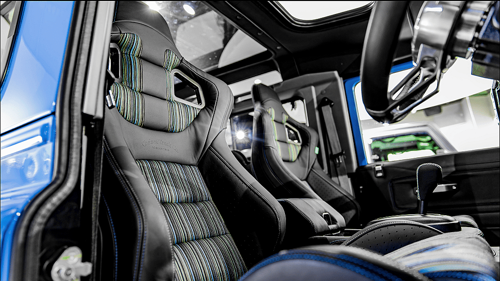 They’ve opted for counter-intuitive French Racing Blue paintwork to help The End stand apart from more traditional British Racing Green Defenders.