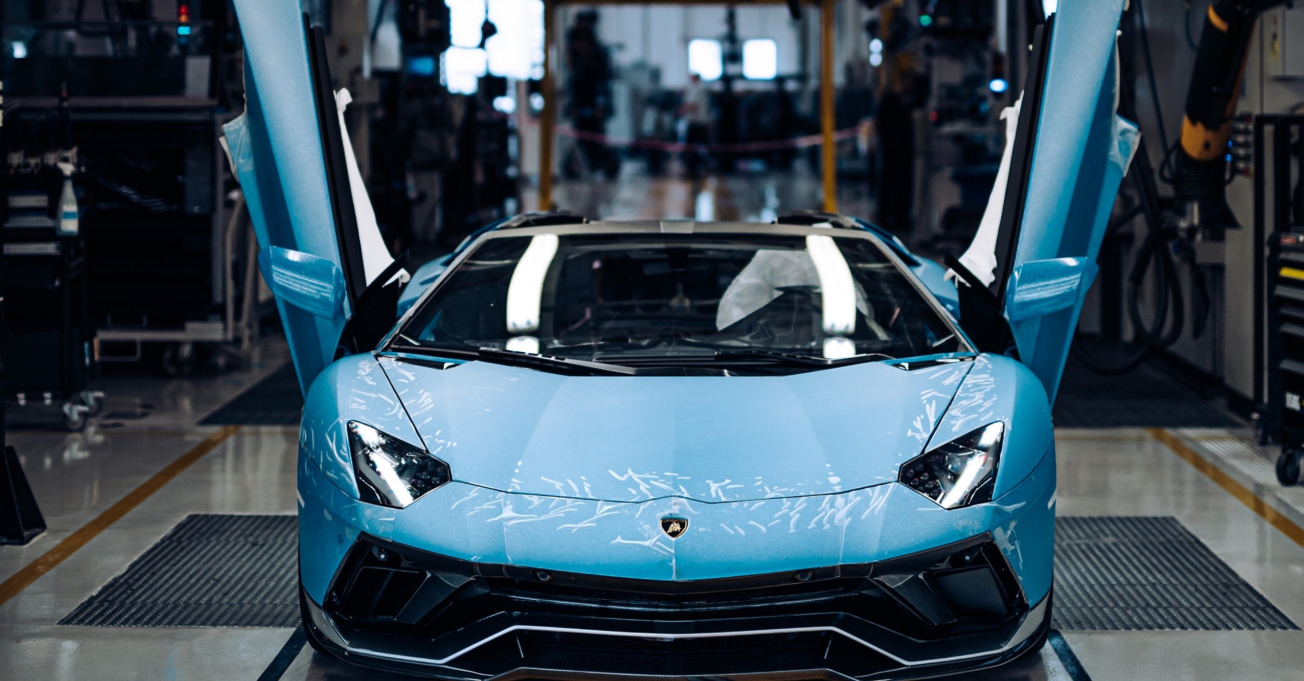 The actual final Aventador Ultimae seen here in various assembly stages is finished in a light blue Ad personam color and is destined for the Swiss market. It marks the end of the naturally-aspirated Lambo V12 and the blistering performance figures it bestowed upon the Aventador, including a 2.8-second zero-to-60-mph time and a 221-mph top end.