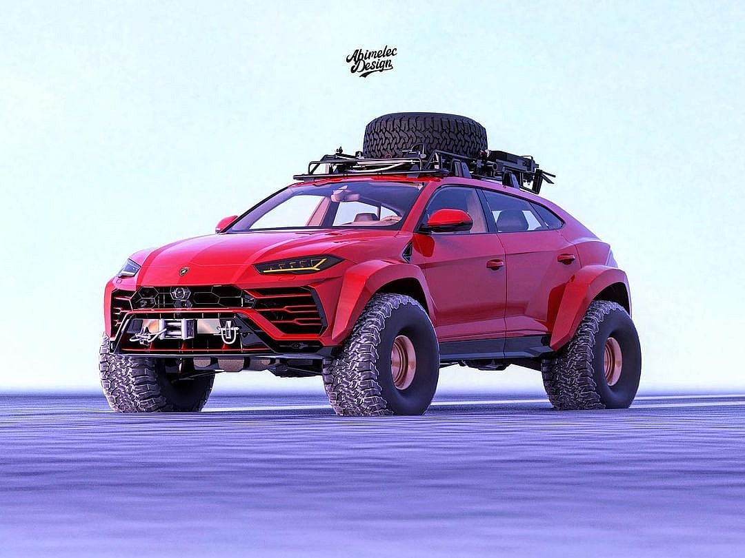 “The Urus still looks right at home with big balloon tires ready to tackle the snow. This has a Lamborghini Countach inspired color theme, with bronze wheels, red paint and tan leather interior,” Arellano captioned an Instagram gallery spotlighting his creation.