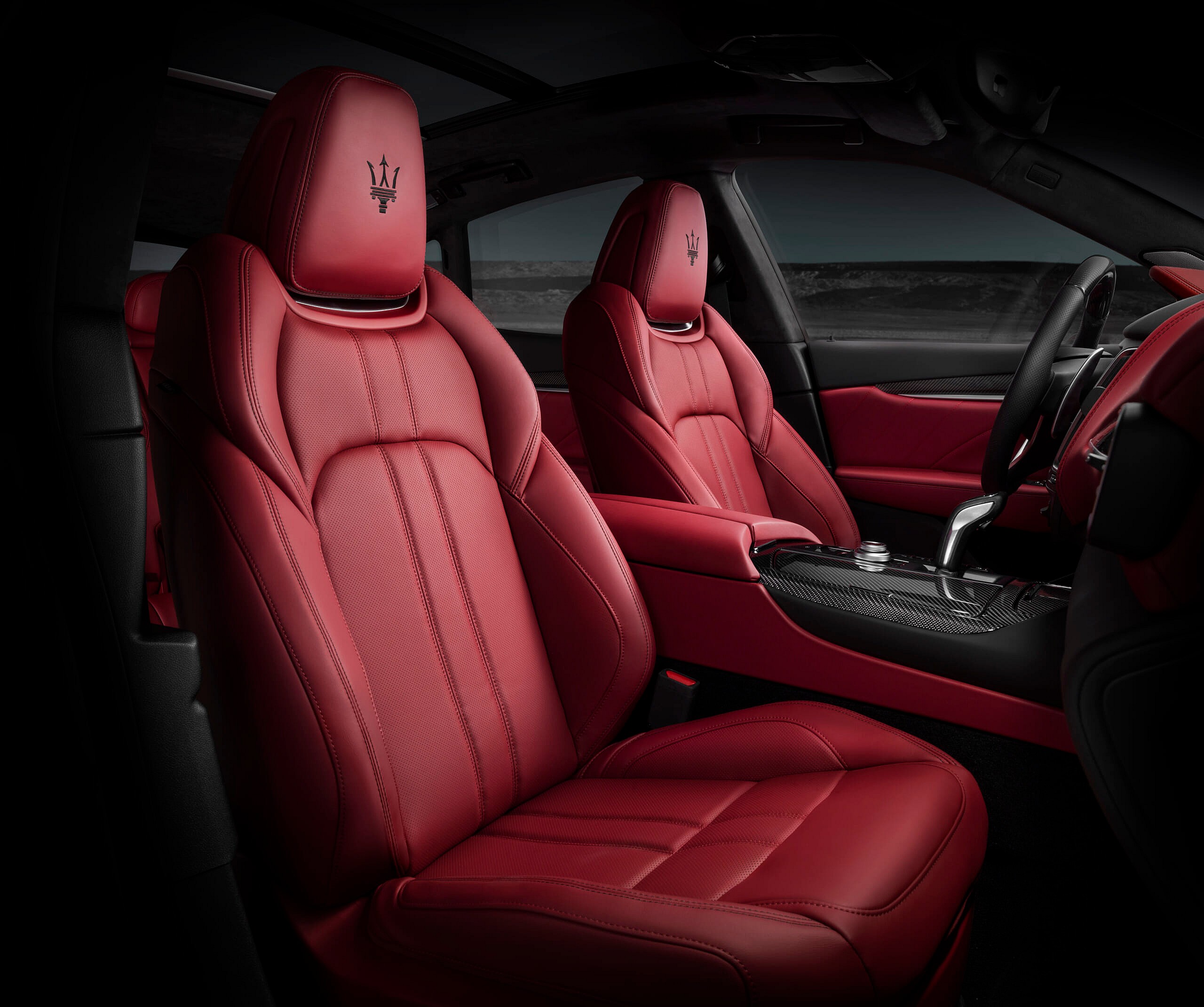 To underscore sporty character of the Levante GTS, the interior features piano black trim, aluminum paddle shifters, sport foot pedals, Maserati clock dial, illuminated door sills, chromed trunk sill and velour floor mats. The Levante GTS’s standard sound system is the uplevel 900-watt, 14-speaker Harman Kardon Premium Sound System.
