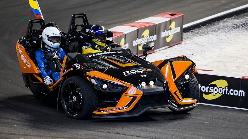 We found a way to top driving the Polaris Slingshot that we reviewed last year: We strapped into the passenger seat and rode along with racer Juan Pablo Montoya while he won his event at the Race of Champions.