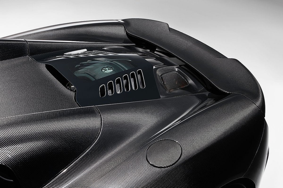 Now, the finished product is complete and McLaren is delivering the first of the black beauties. Technicians substitute fully 40 percent of the 675LT’s bodywork that wasn’t already carbon fiber with the bare black weave material to produce this stunning result.