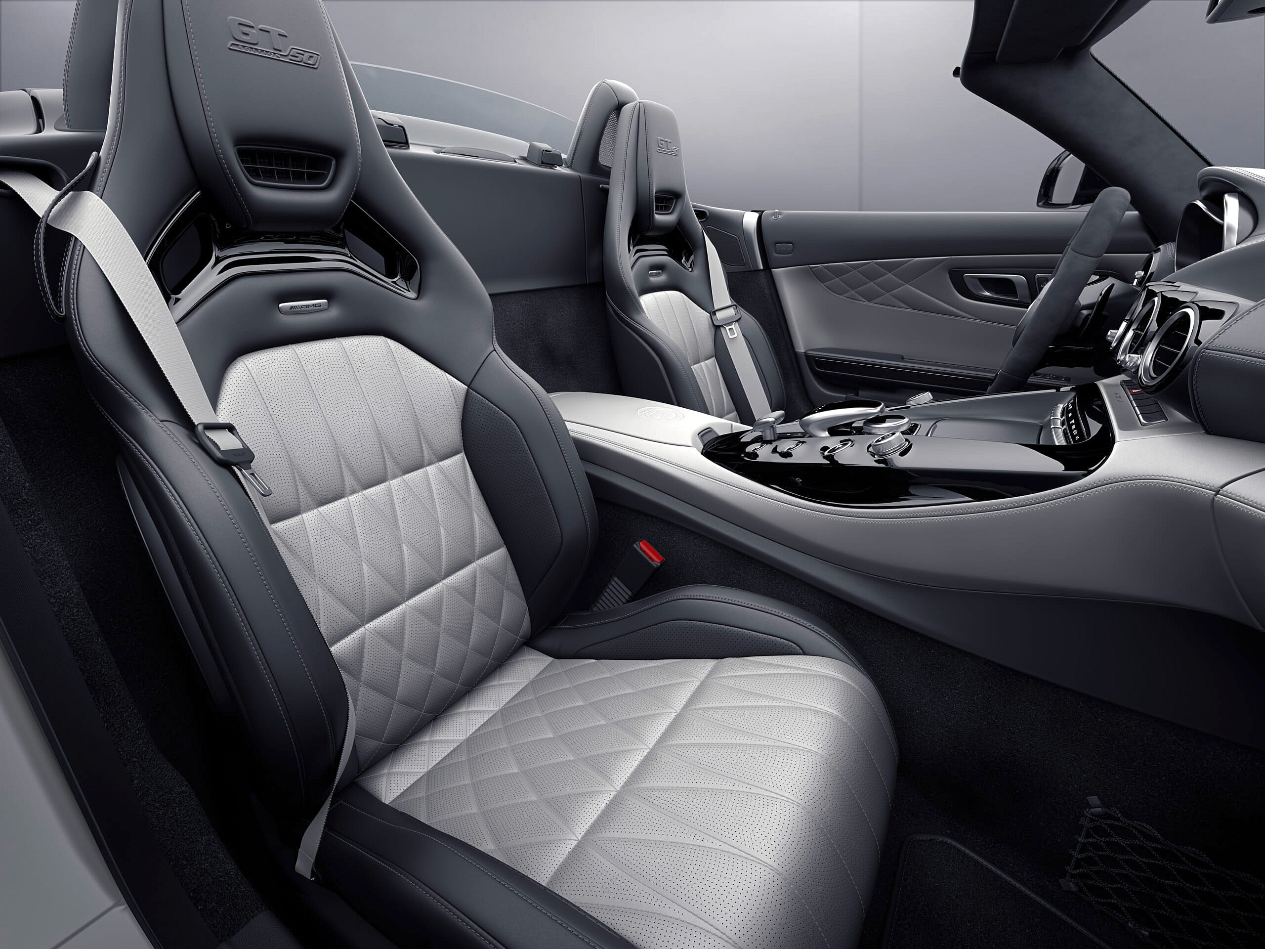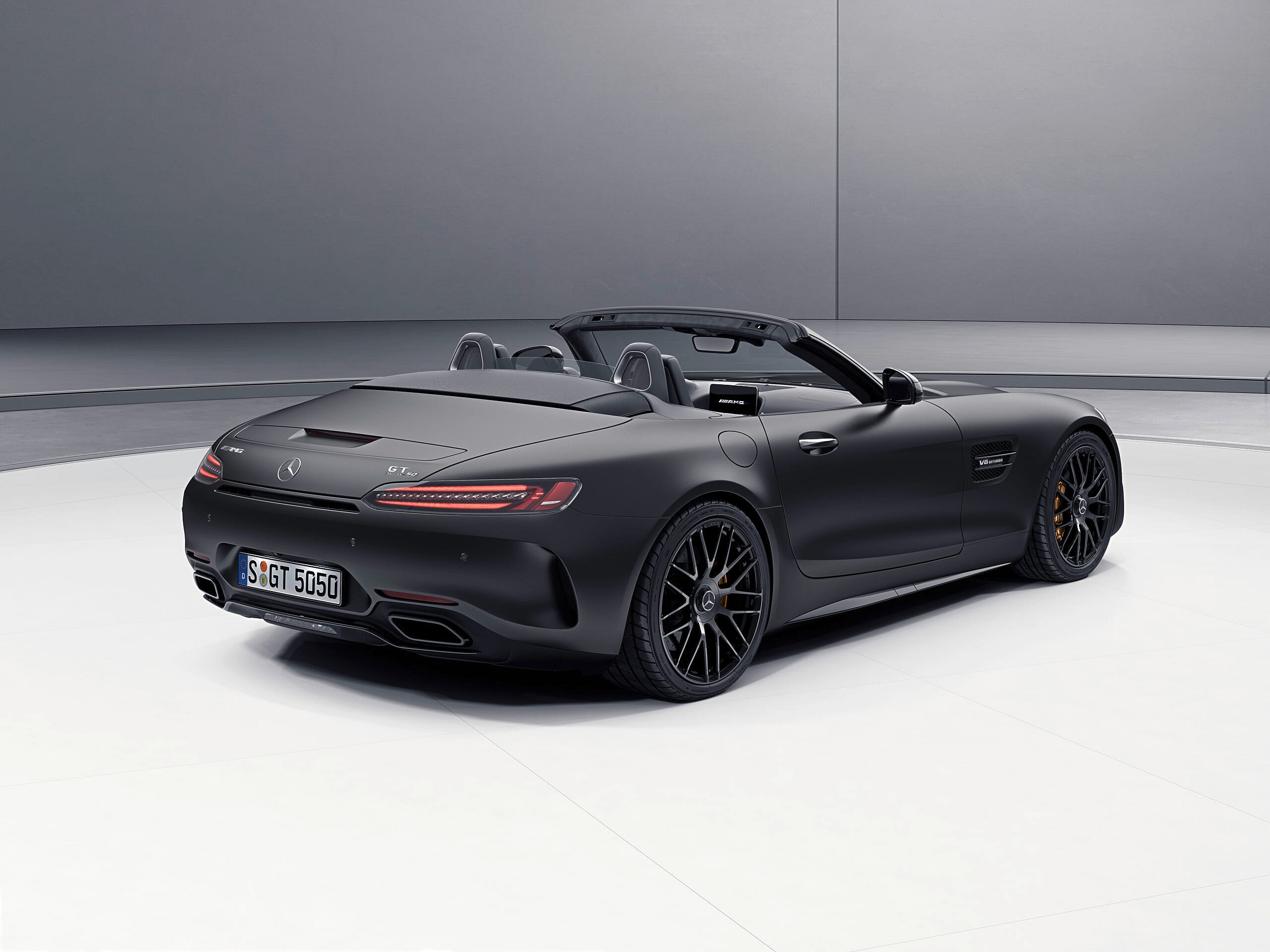 Mercedes-AMG will build just 50 550-horsepower AMG GT Roadster Edition 50s for the U.S. market in eye-catching matte Graphite Grey Mango complimented with black chrome accents on the side skirt trim, front splitter, trim strips in the air intakes of the Panamericana grille, fins on the side air outlets in the front fenders, on the rear diffuser and tailpipe trim elements.
