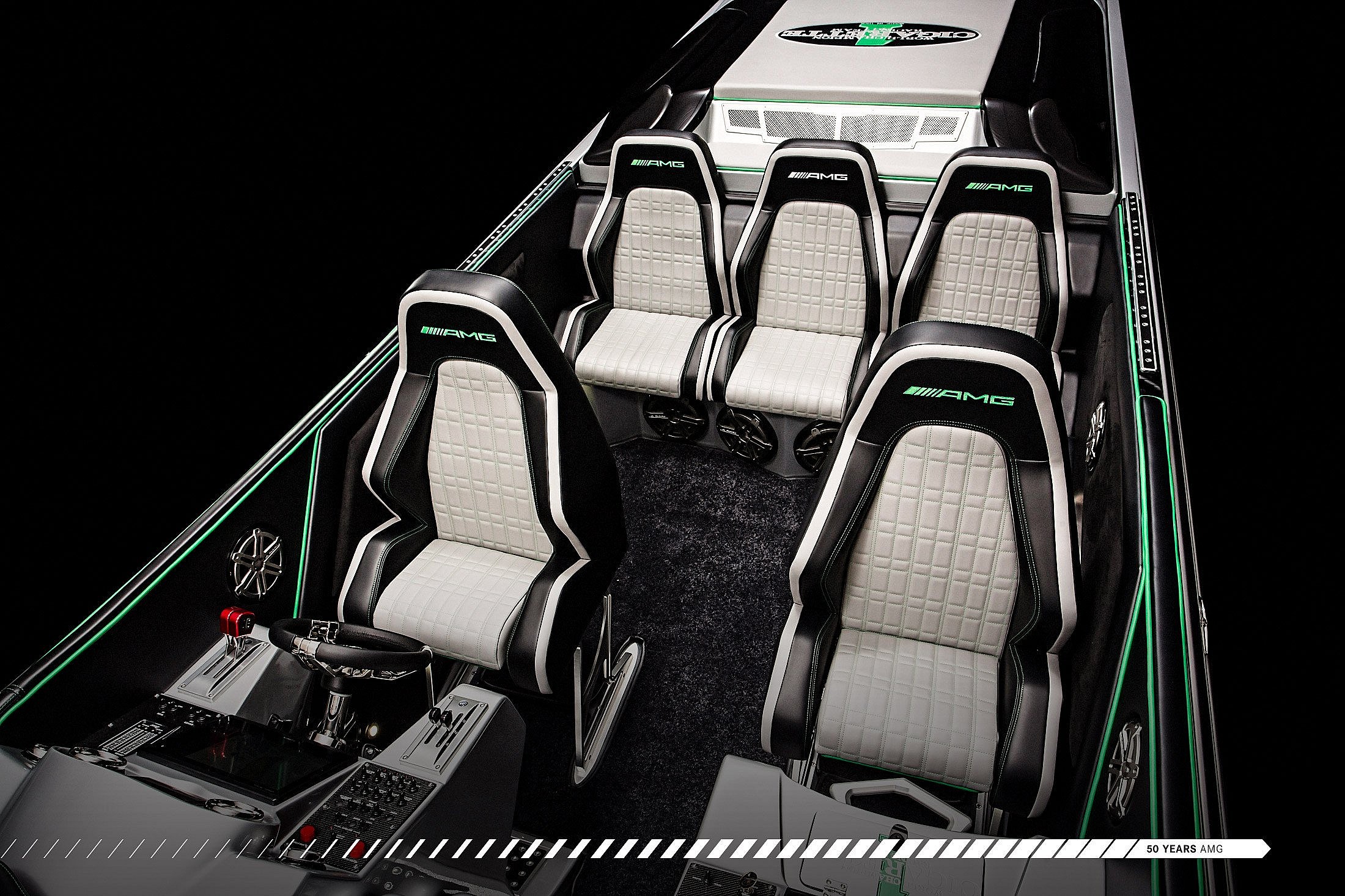 The 2017 50′ Marauder AMG GT uses carbon fiber construction, just like the AMG GT car to trim 1,300 lbs. of weight, for maximum performance.