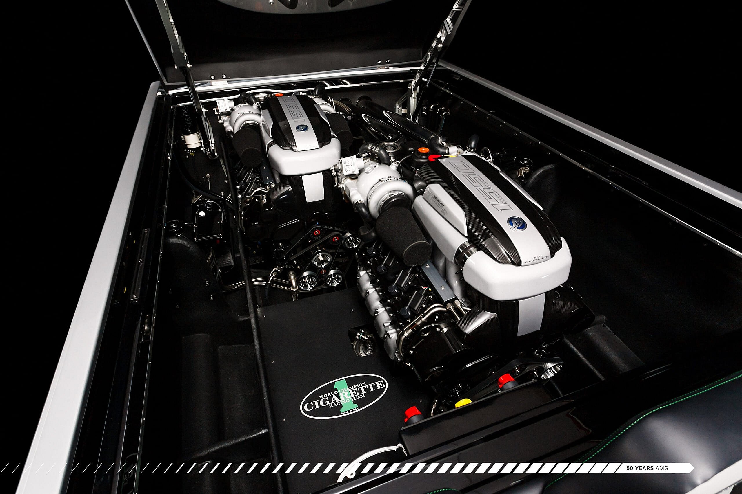 “Performance, perfection and passion are the values that unite Mercedes-AMG and Cigarette Racing,” explained Tobias Moers, chairman of the board of management of Mercedes AMG. “Based on these values, eight sensational special editions have been created during our successful ten years of collaboration, and the 2017 50′ Marauder AMG presented here is a particular highlight among these.”