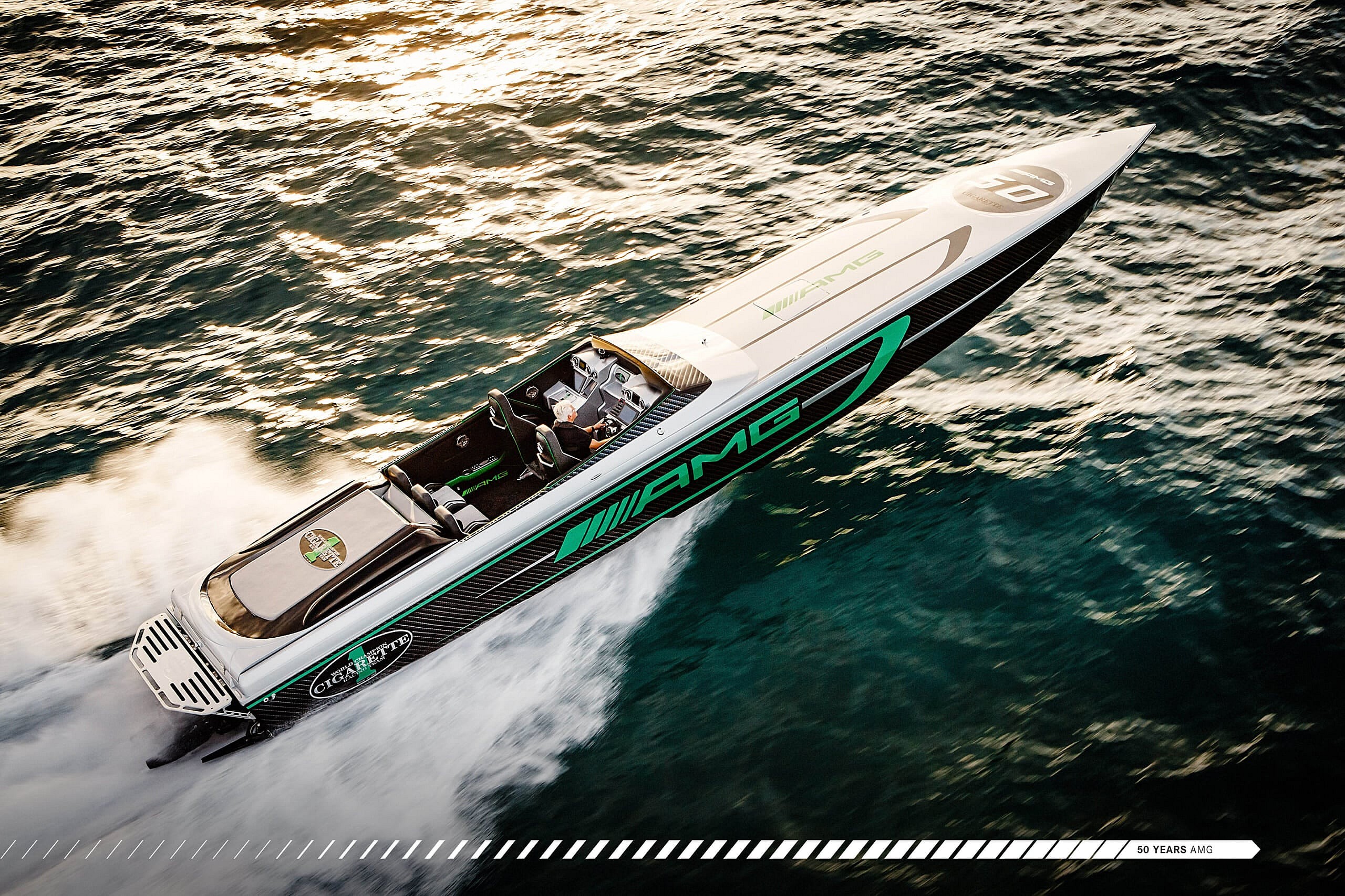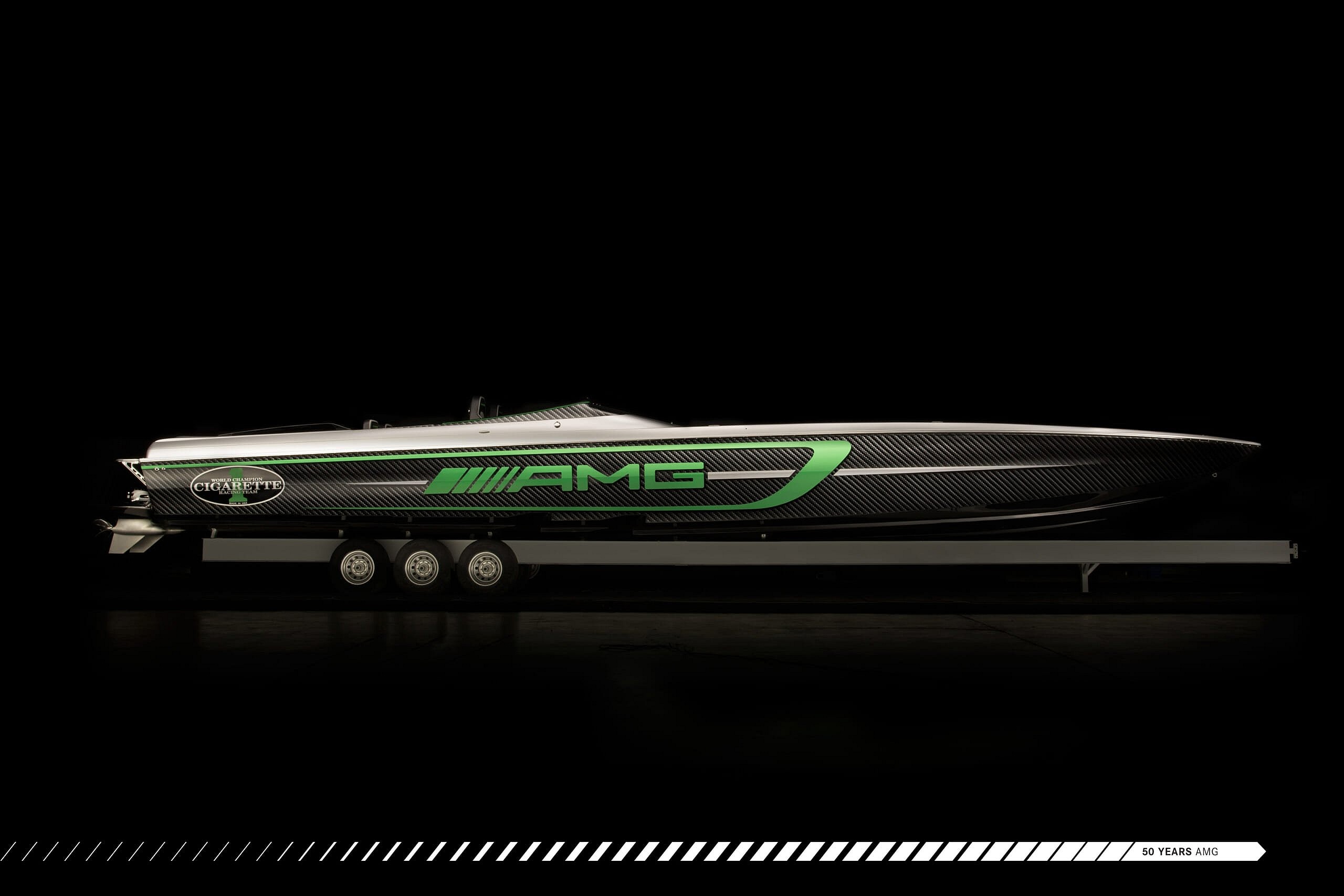 Mercedes-AMG celebrated a decade of collaboration with Cigarette Racing at the Miami International Boat Show by introducing a new 50-foot offshore racing beauty.