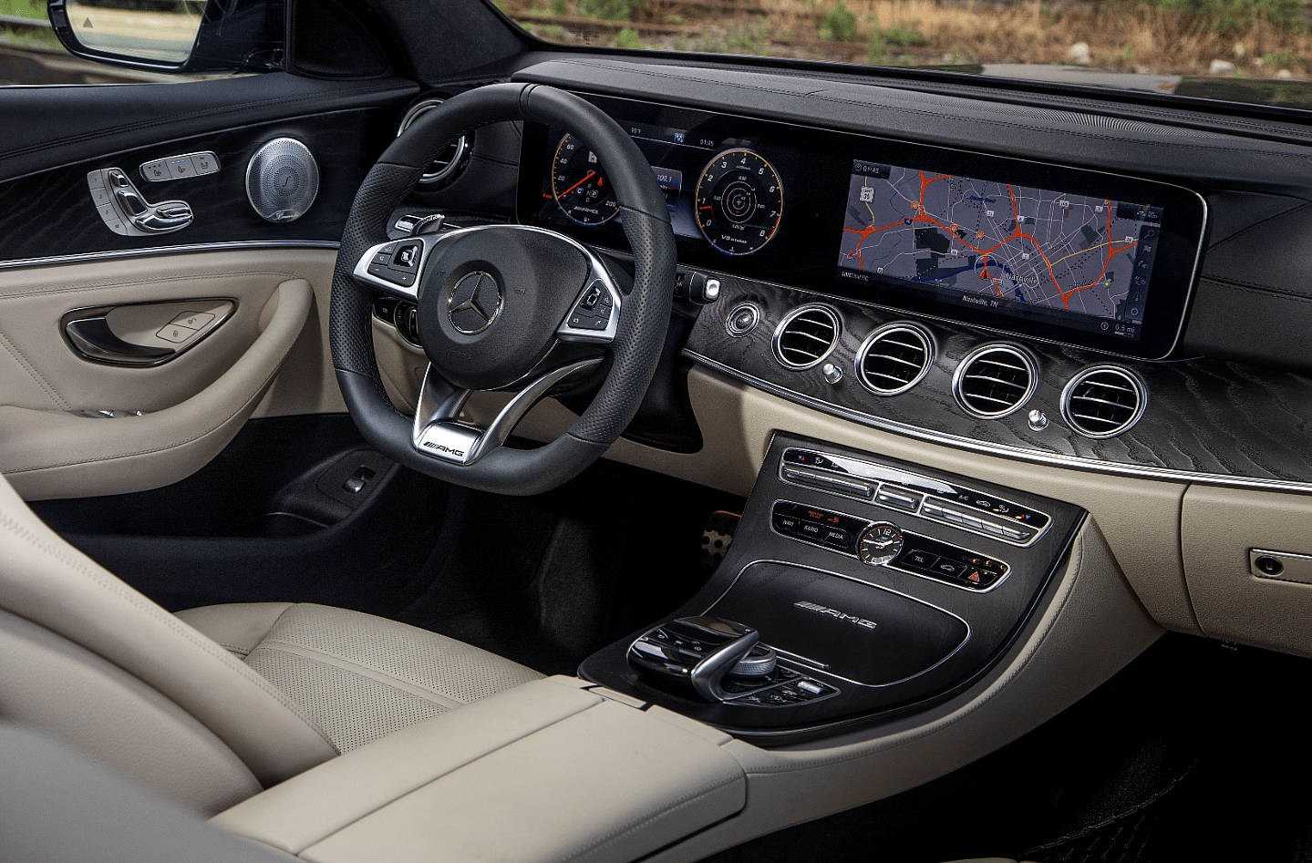 Sadly we didn’t get a chance to take any GLC63 out on the track, but we were given time behind the wheel of the same engine placed in their E63S sedan and, Lordy, was that a blast. On the NCM Motorsports Park outside Bowling Green the 63S engine delivered delirious bursts of power upon exiting corners. Tons and tons and tons of torque, making us wonder at the time what it would be like in this much smaller GLC body.