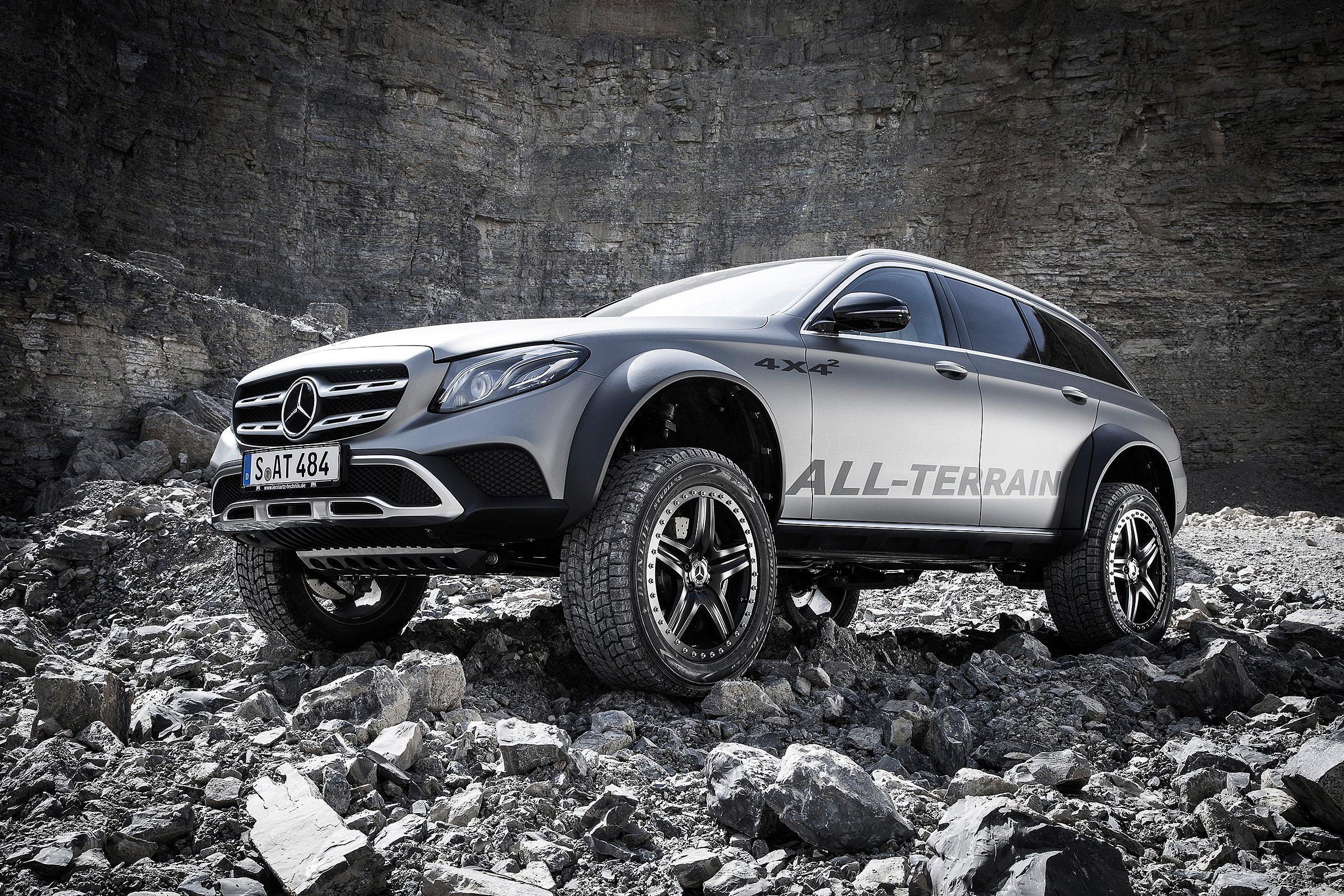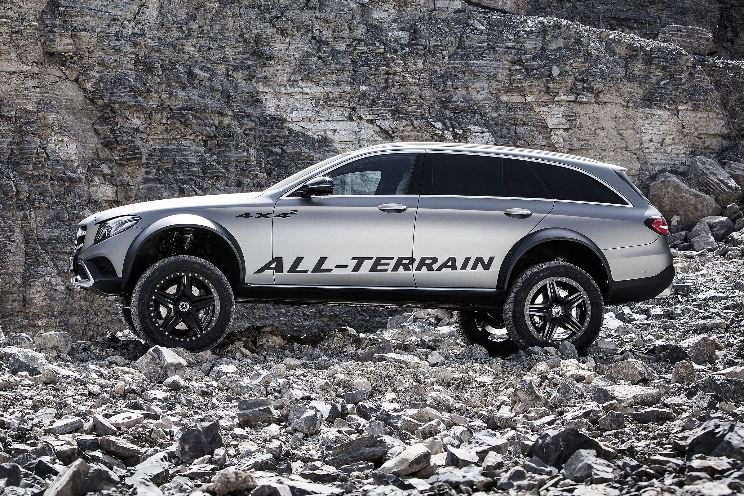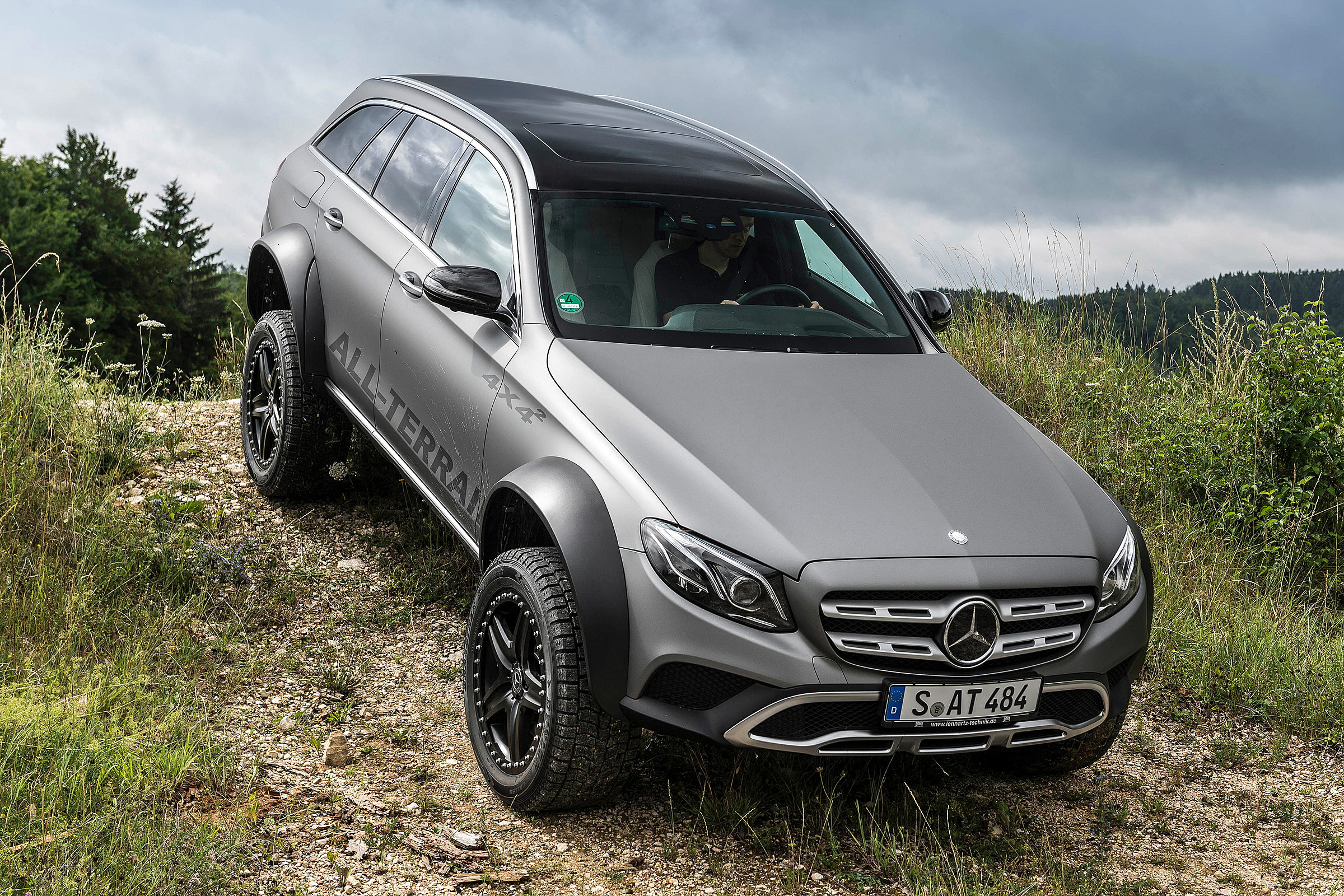 Britain’s Auto Express reports that Eberle got a crazy notion that the E-Class wagon is just the vehicle that needed a true All Terrain version, so he raised the car’s suspension and then added the portal axles from the G-Class 4×4² to produce nearly 16 inches of ground clearance.