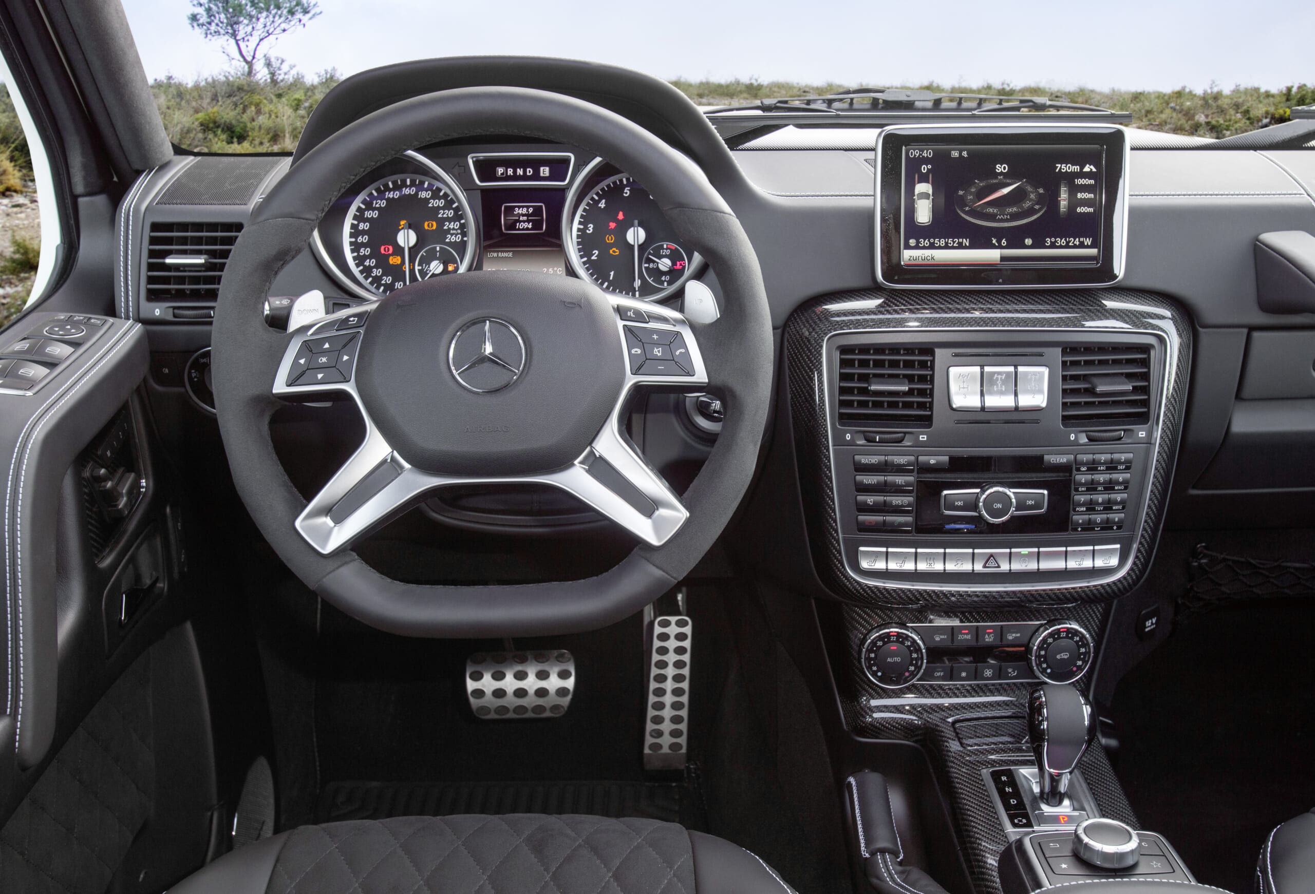 The first step, when driving off-road, is to lock the G-Wagen’s center differential, so it sends equal power to the front and rear wheels. If the going starts getting tough, then it is the #2 button to lock the rear differential. Now both rear wheels turn at the same speed.