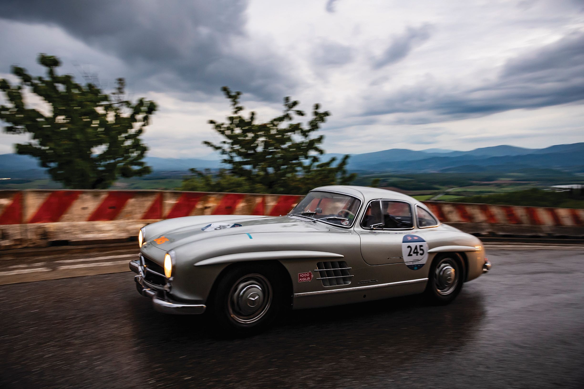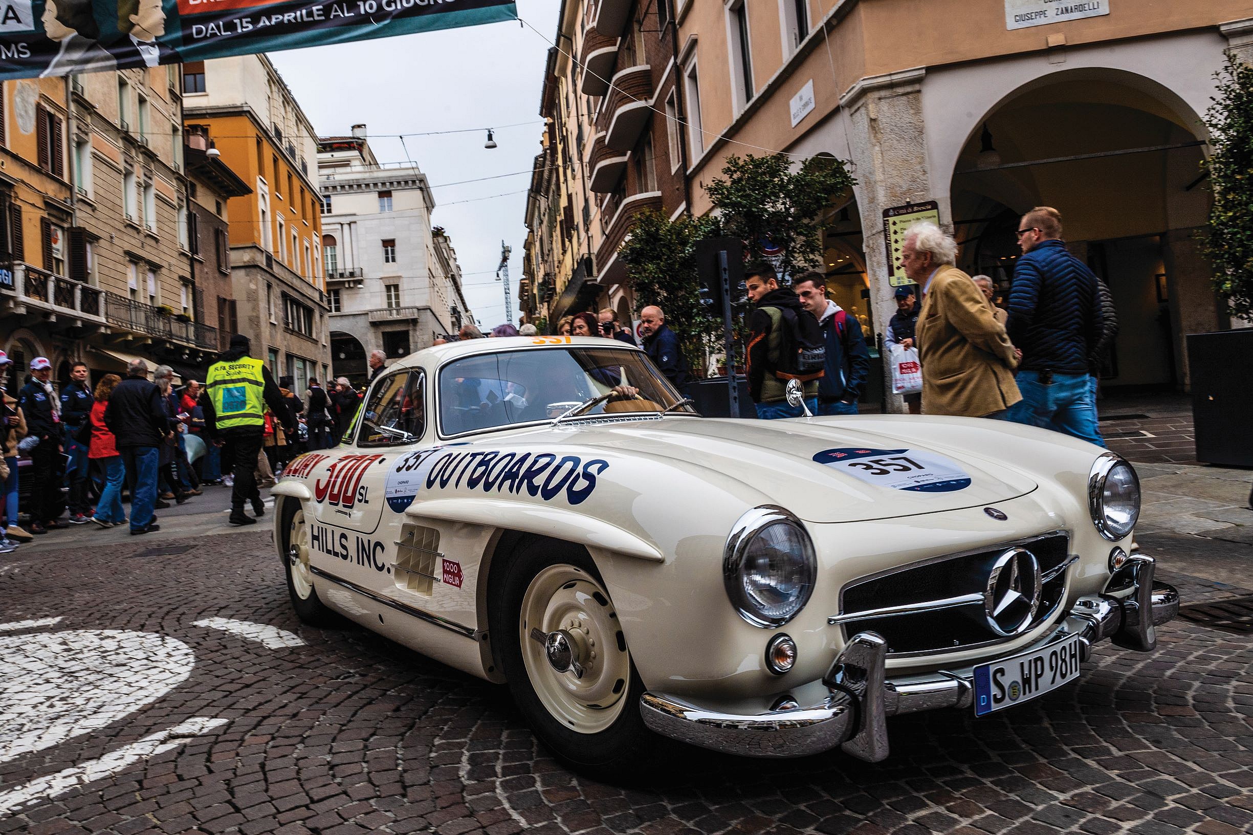 The first time I fire up the 300 SL my stomach is in knots. I’m in a parade of 400-plus cars charging their way out of the Italian city of Brescia, but this is no ordinary procession. This is the famed 1,000 Miglia (“Mille Miglia”), arguably the most legendary rally the world over, meaning each of these antique vehicles is a collectable widget of obscene value.