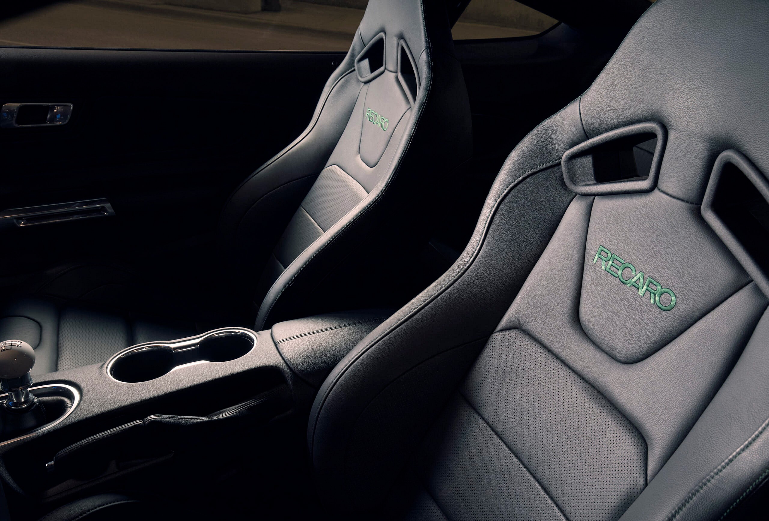 There are three available option packs for the Bullitt, an electronics package that includes navigation, upgraded audio, blind spot warning and cross-traffic alert, Magenride magnetically adjustable shocks for better ride and better handling, and Recaro seats that have green embroidery to match the car’s paint.