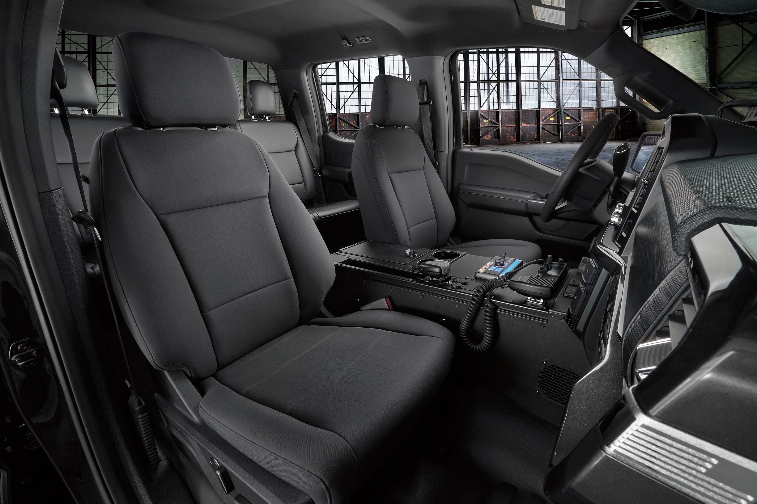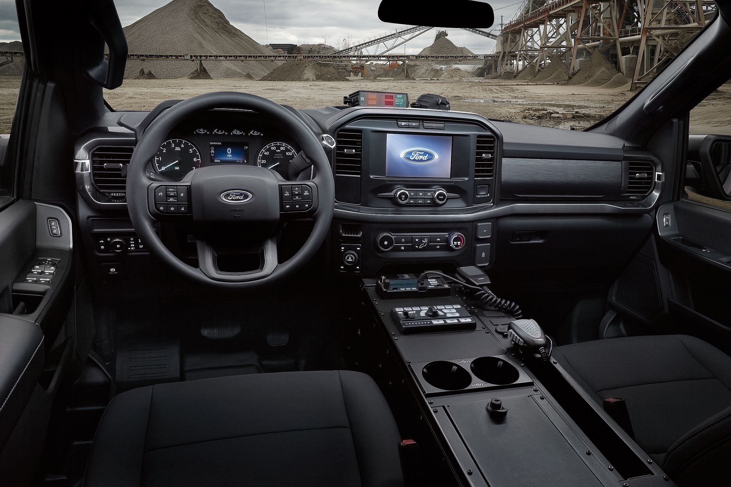 Tailor-made for law enforcement fleets, the standard F-150’s 3.5-liter EcoBoost V6 still makes 400 horsepower and 500 pound-feet of torque, but it’s mated to a uniquely calibrated 10-speed SelectShift automatic transmission to allow for a pursuit-worthy top speed of 120 mph.
