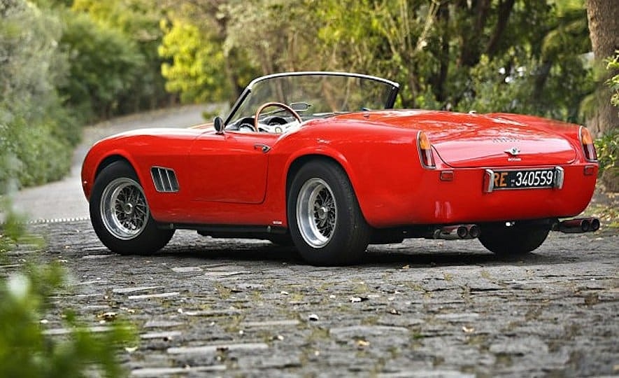 SWB California Spiders were also raced at the 24 Hours of Le Mans and the Targa Florio. Between 1960 and 1963, Ferrari built 56 SWBs, with only 37 being covered-headlight versons. It’s the first time this Spider is up for pubic auction, and its first appearance outside Italy.