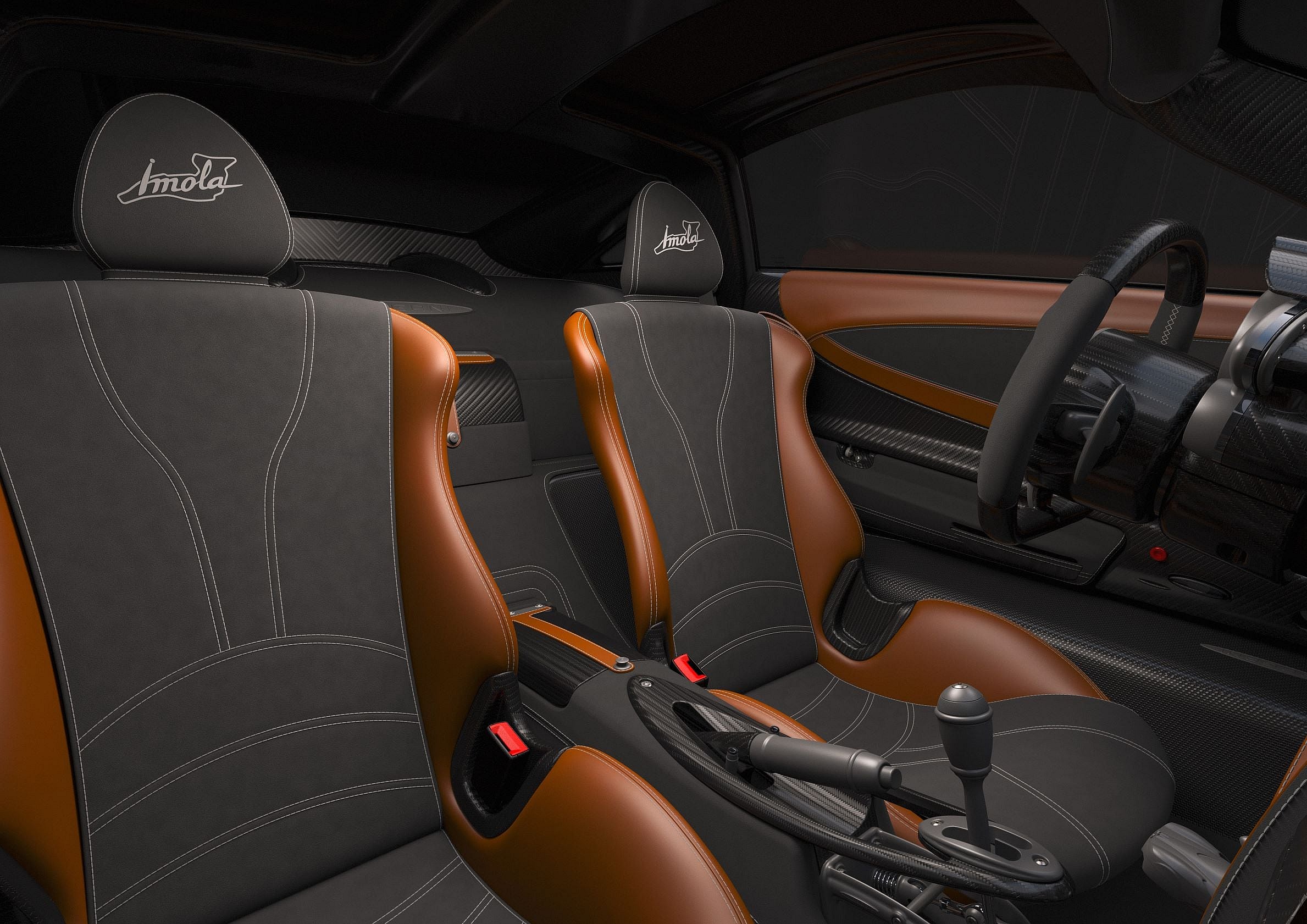 Pagani reports that the Imola was put through almost 10,000 miles of testing on a track at race speed and claims that a seasoned driver with quick reflexes can wait until the very last thousandth of a second before braking for a corner. This is made possible thanks to the suspension’s geometry, which has been newly designed to transfer more ouput to the ground, thereby reducing dive and sway effects.