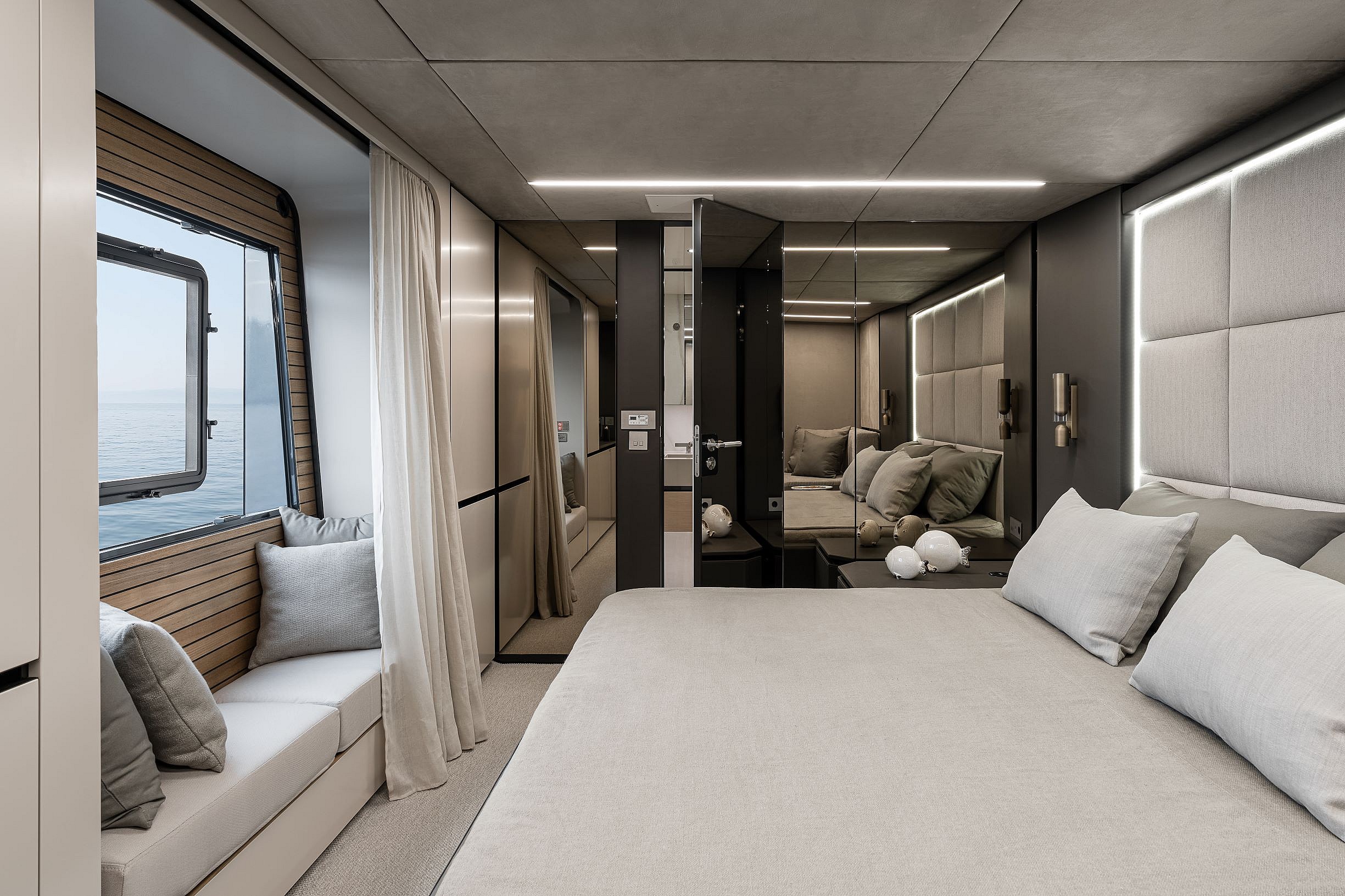 The crew quarters along with the galley and crew mess can be accessed directly from the aft cockpit for more privacy on board. Multiple layout configurations are available to set up luxurious guest cabins for a supreme level of comfort on board.