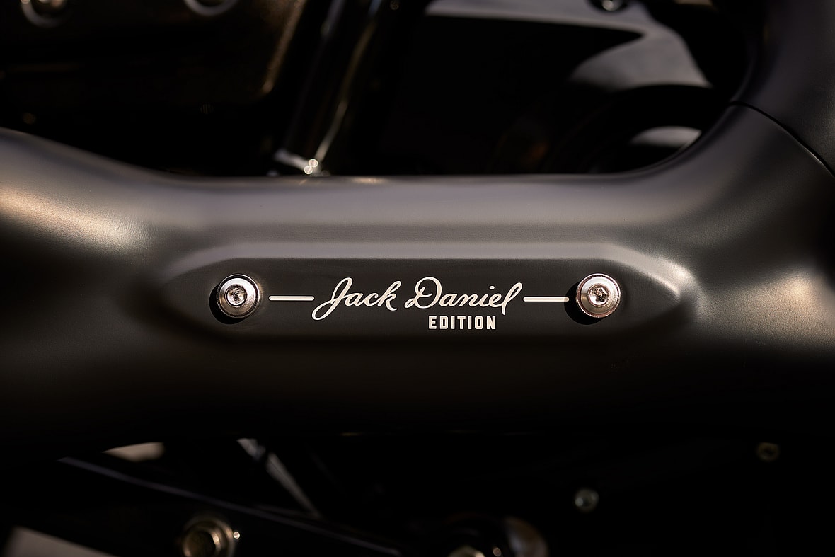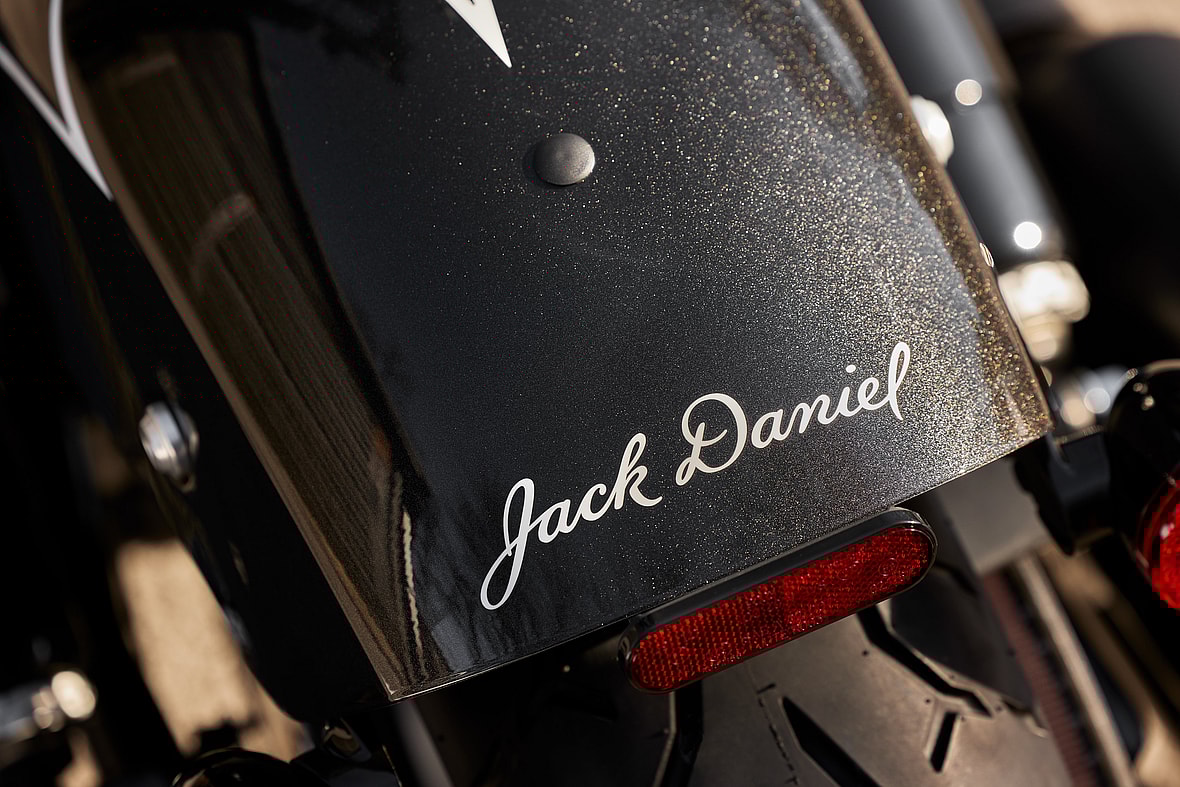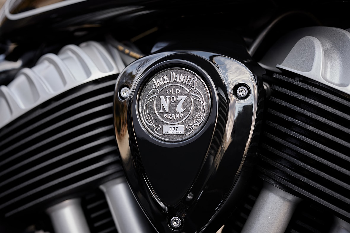 JD branding is emblazoned throughout. The fenders and exhaust feature the signature of the brand’s eponymous founder, while “Old No. 7” badges appear between the cylinders, within the rear portion of the frame and on the black solo seat.