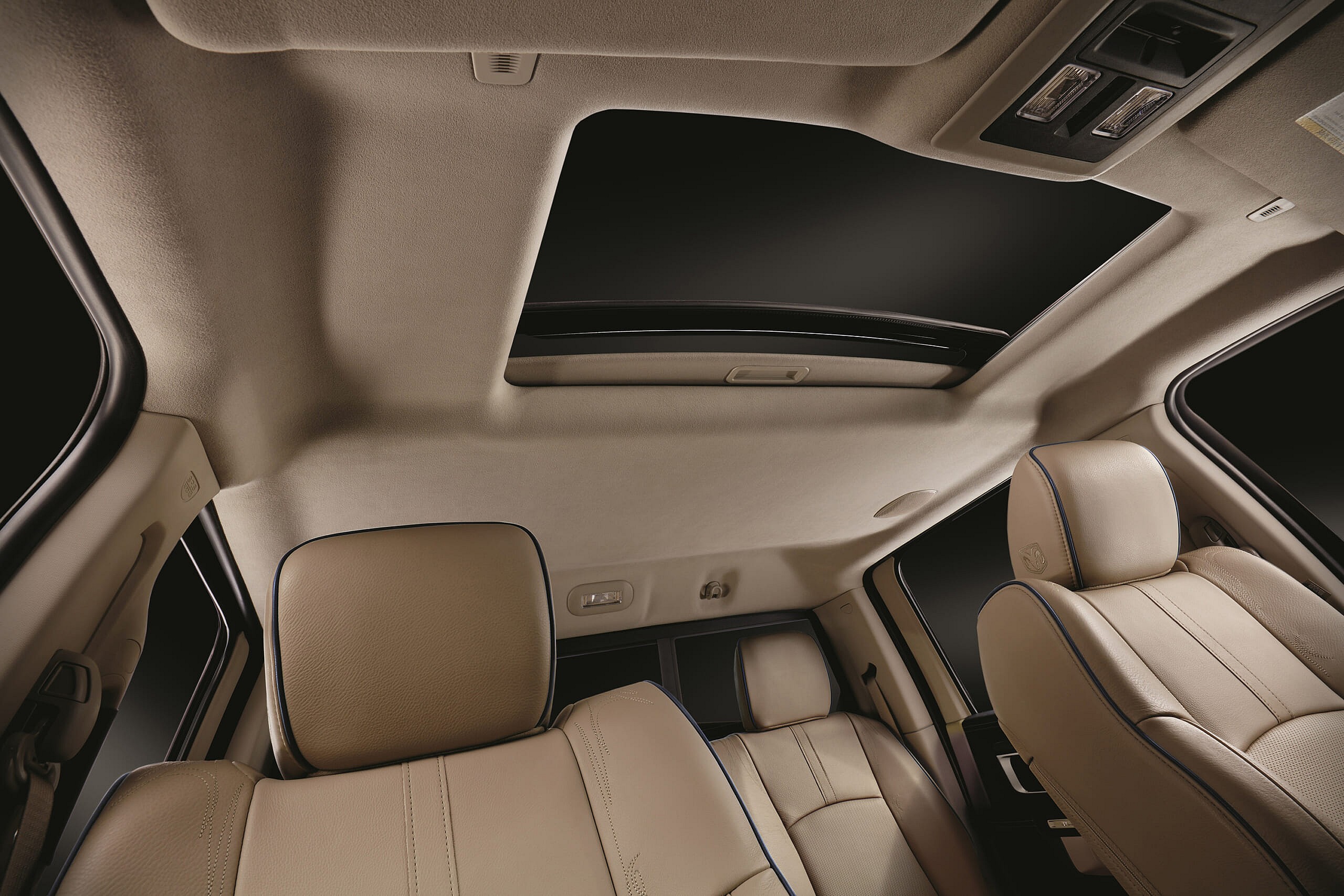 Outside, check out the tungsten chrome grille with large R-A-M lettering, body-color matched bumpers, mirrors, door handles and running boards. The headlights sit in a black bezel borrowed from the Sport model, and body-color “R-A-M” letters cover the tailgate.
