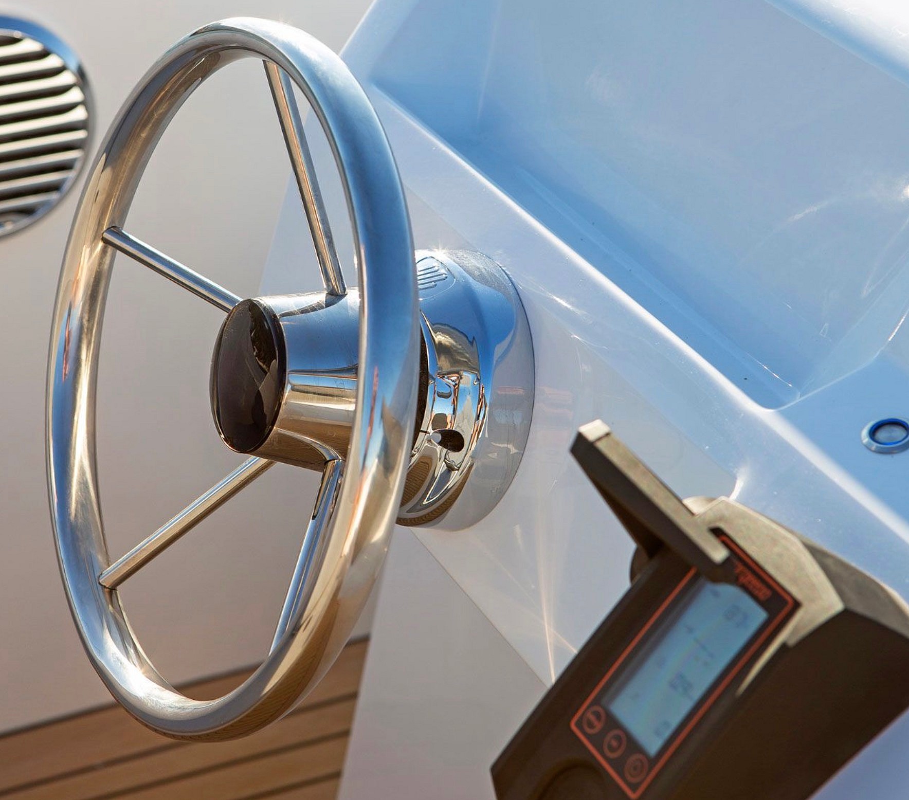 The Mana has one of the most straightforward steering consoles you’ll see in a boat like this, one that’s been intuitively and ergonomically designed for pleasurable boating. Along with a captain’s seat that’s been practically combined with the engine hatch everything is coordinated for maximum accessibility.