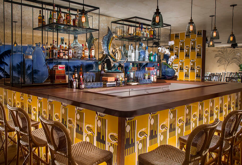 For the bar, Johnson went to some trouble to have the actual tiles from Hemingway’s house in Cuba reproduced, and the colorful space is adorned with photos of Papa at his saltiest, whether reeling in a giant marlin or quaffing one of his beloved daiquiris.