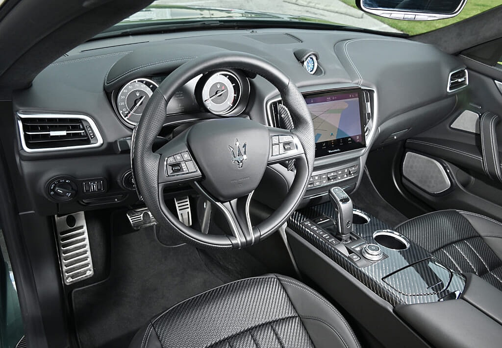 All in all, as Maserati puts it, adding up to a car that “represents the ultimate expression of dynamic beauty,” again with that Italian edge that is simply more lustworthy than the cold precision of the Germans. The cues are relatively subtle, but if the unique Fuoriserie Verde Royale green paint didn’t tip them off, the blacked-out wheels and badges definitely let other drivers know that this was no “ordinary” Ghibli—a rather less subtle signal to get the hell out of the way.
