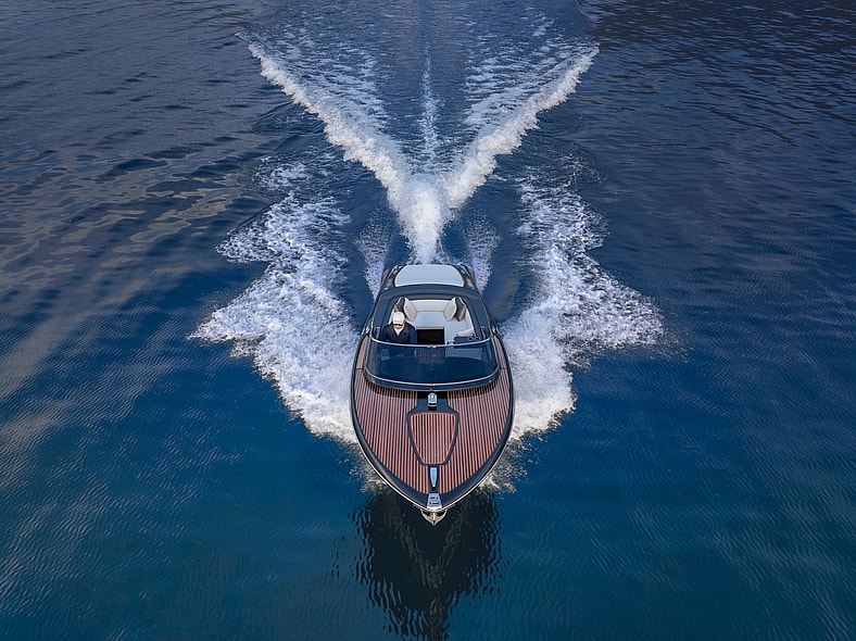 The Riva Iseo Super may be the entry-level motorboat in revered Italian boatbuilder’s lineup, but that doesn’t mean a single sacrifice has been made. Described by chief designer Mauro Micheli as “the motorboat for lovers of low-key lake sailing,” the relaxation-minded runabout maintains the signatures that have propelled Riva to seafaring sanctification, including high-gloss mahogany woodwork treated with 24 coats of varnish on the deck and stern platform, steel detailing on the side grilles and the brand’s famous aquamarine waterline.
