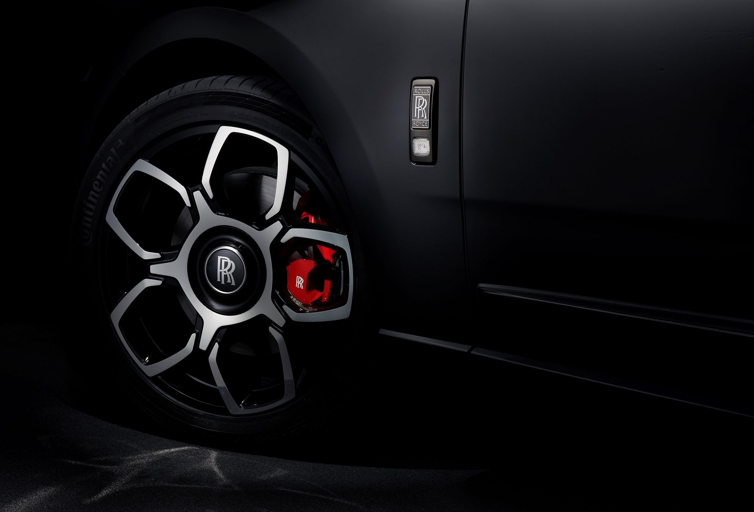 Moving below the body are 22-inch gloss back alloy rims—reserved exclusively for Black Badge Cullinan— and the marque’s first-ever colored brake caliper in red.