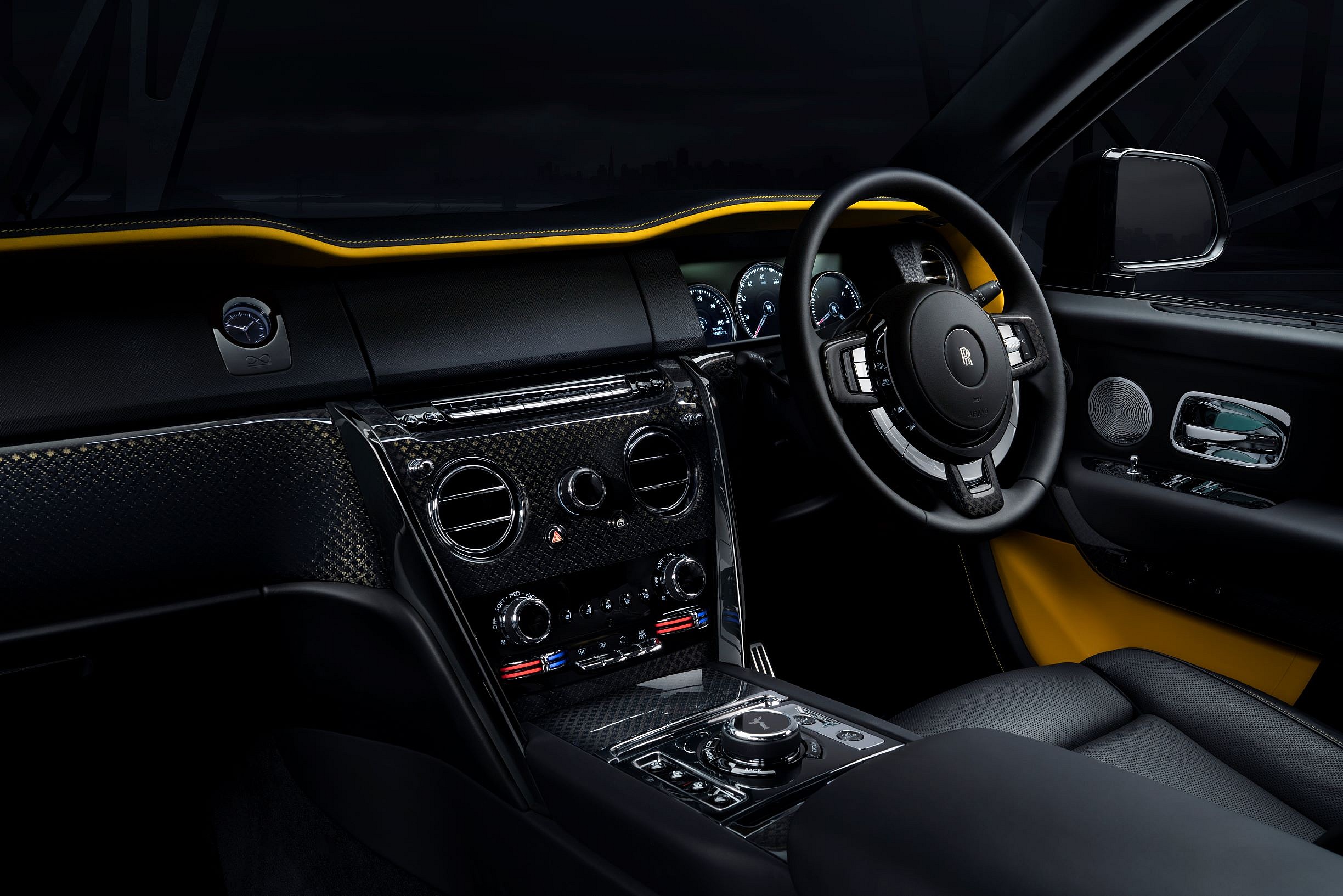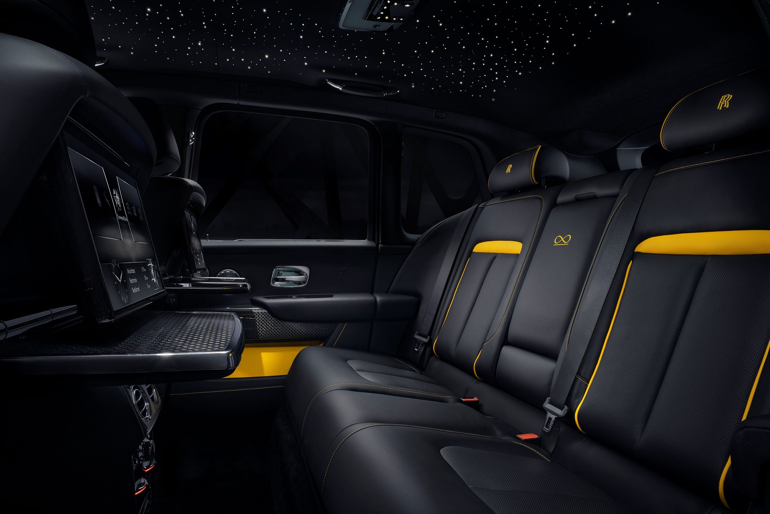 The special-edition Cullinan’s shell is finished in multiple layers of black paint and lacquer that were meticulously applied and hand-polished 10 times at Rolls’ headquarters in West Sussex, England.