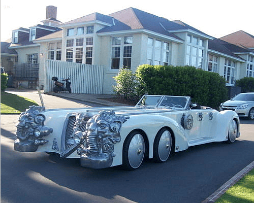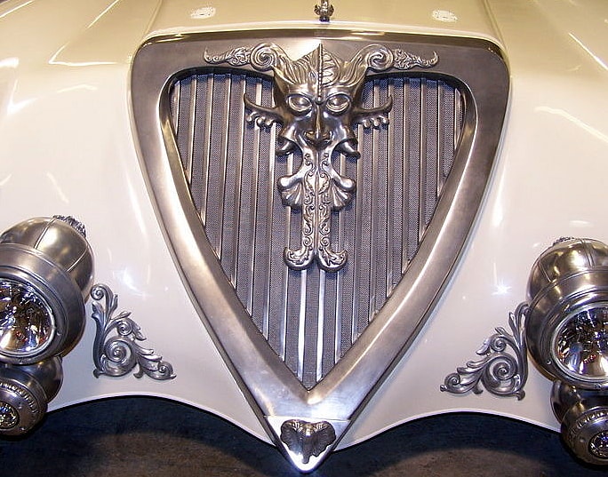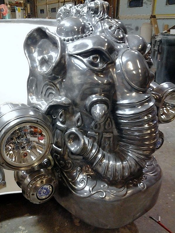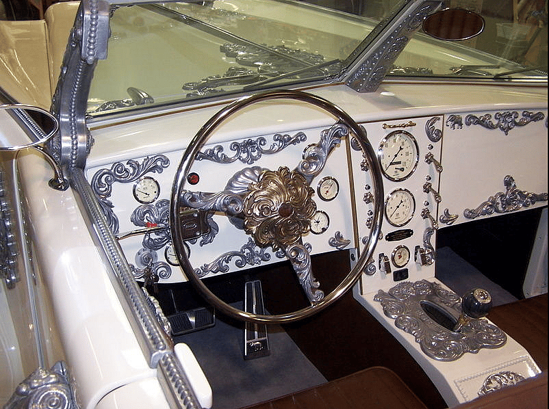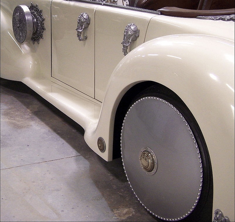 Aside from the challenge of building such a huge, four-door, open roof oddity, which required the donation of two 1979 Cadillac limousines and steel I-beams salvaged from a demolished bridge, Freeman made 187 molds to cast 120 pieces of the car’s decorative parts in pewter and aluminum.
