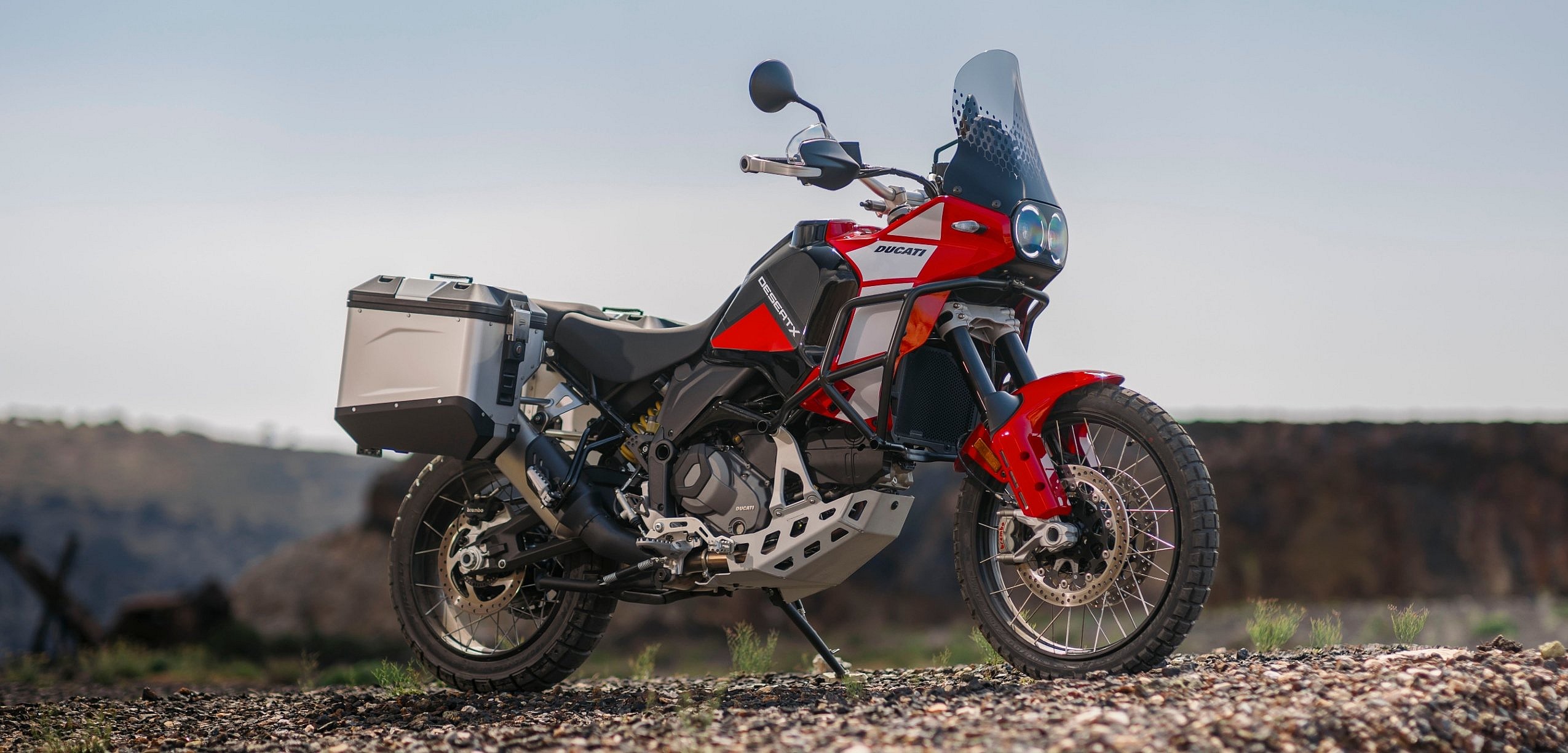 On- or off-road, the DesertX Discovery has a few extras that set it apart from the base model. Bolstering its durability on punishing terrain are reinforced hand guards and additional protection for the water pump, radiator grill and oil sump—three components that absolutely need to stay operable throughout a hard day’s ride. Should something go awry, the Discovery features a fold-down center stand to facilitate quick repairs in the field. And when it’s time to take the trek back home on paved roads, the Discovery’s heated grips and enlarged touring-style windshield are welcome creature comforts, especially in colder temperatures.