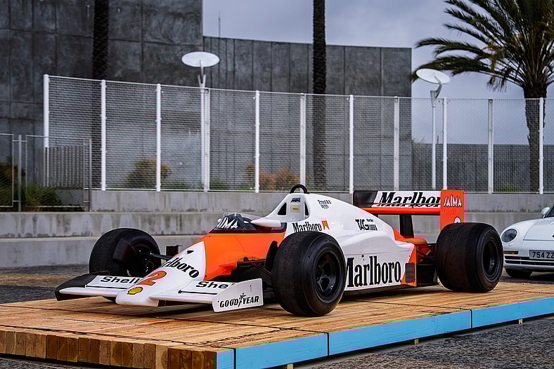 This 1985 McLaren MP4/2B was powered by 1.5-liter turbocharged V6 turbo engine jointly developed by Porsche and McLaren with support from TAG (Techniques d’Avant Garde). Driven by legends Alain Prost and Niki Lauda, it scored the Frenchman’s first of four famous championships, dominating the ’85 season with five wins to claim the title by 20 points over Michele Alboreto’s Ferrari. With assistance from Lauda, the MP4/2B also won the Constructor’s Championship thanks to six wins from 12 races.