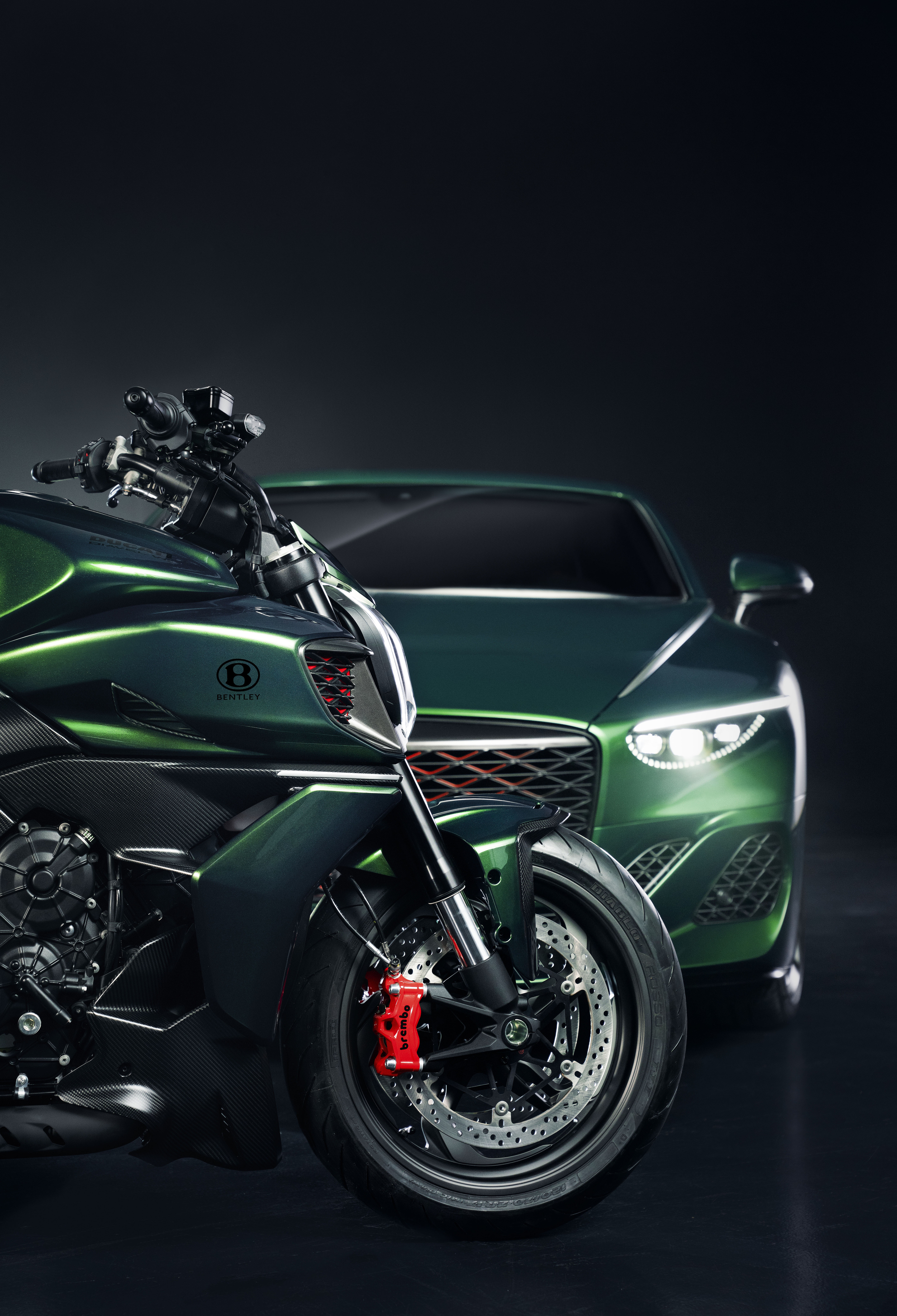 For starters, Ducati and Bentley, like Lamborghini, are owned by Volkswagen Group. Both the Diavel and the Batur also look good in green, specifically the Scarab Green metallic shade lifted from the palette of Mulliner, Bentley’s customization division.